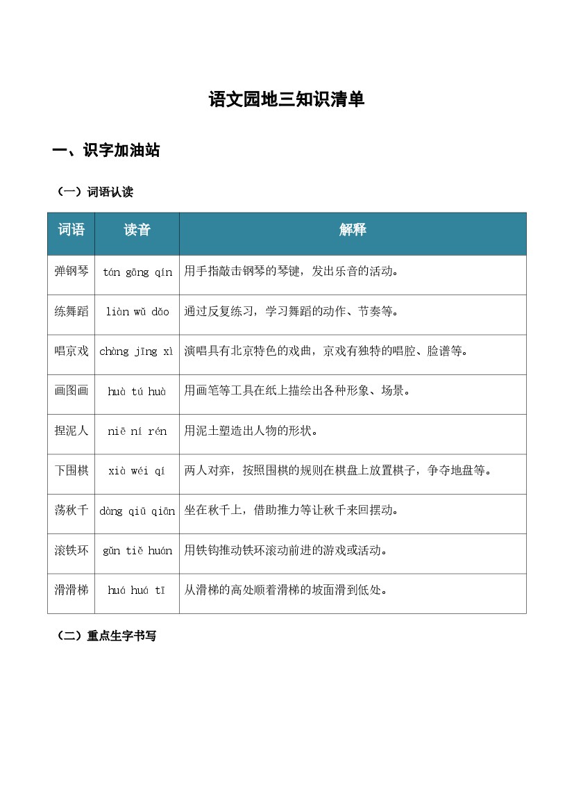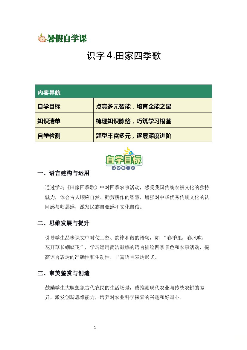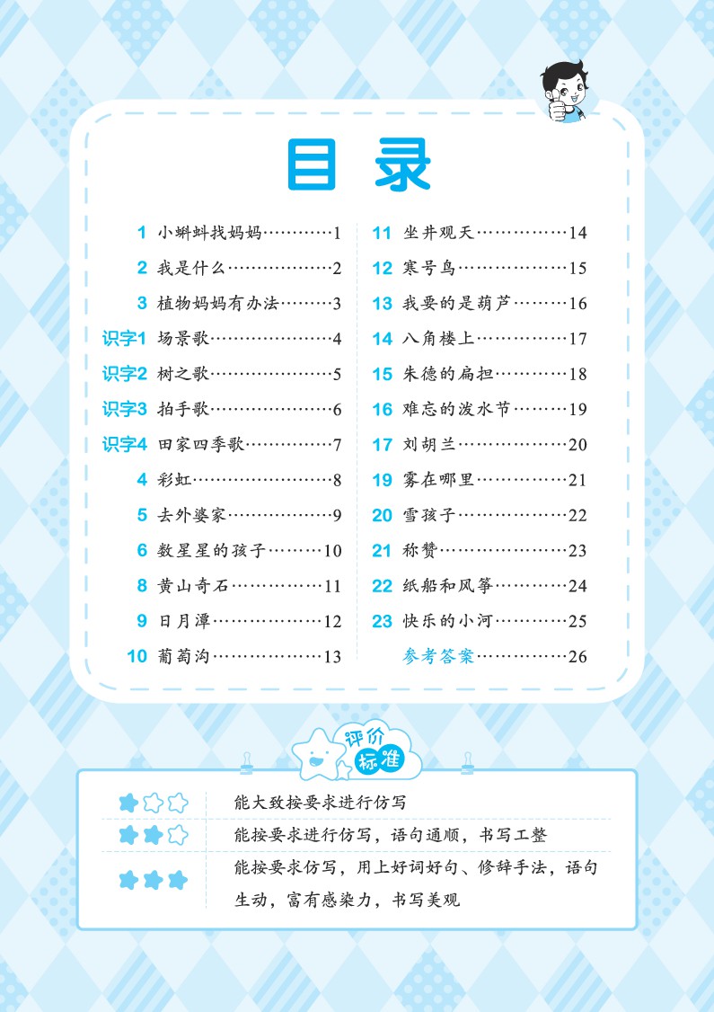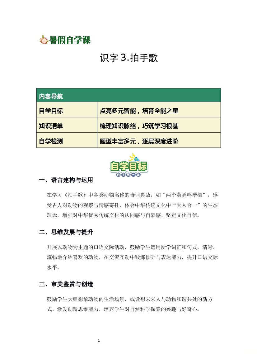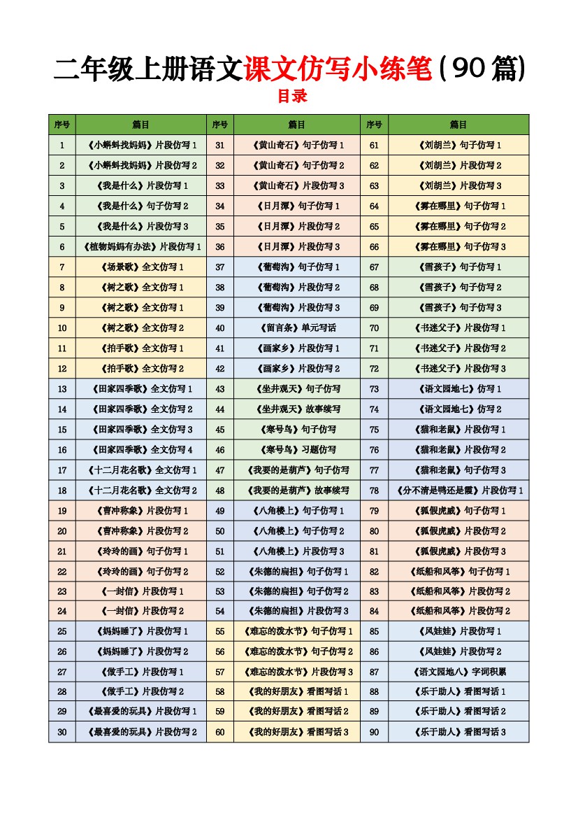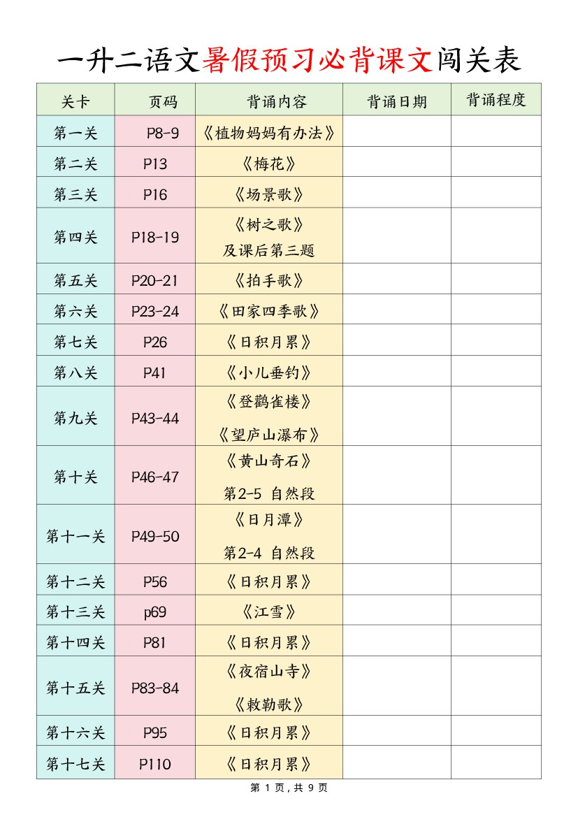 一升二语文暑假预习必背课文闯关表(启智星途)