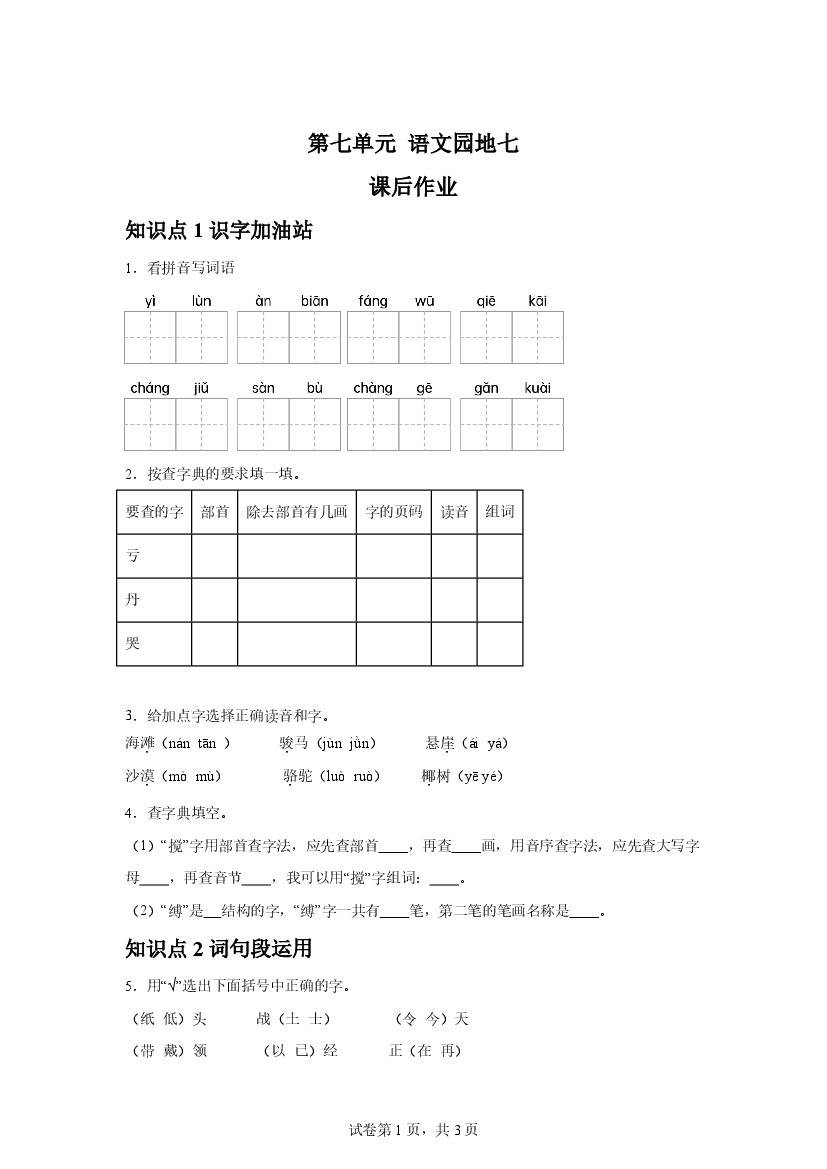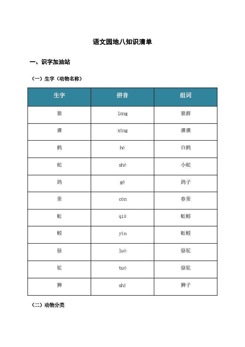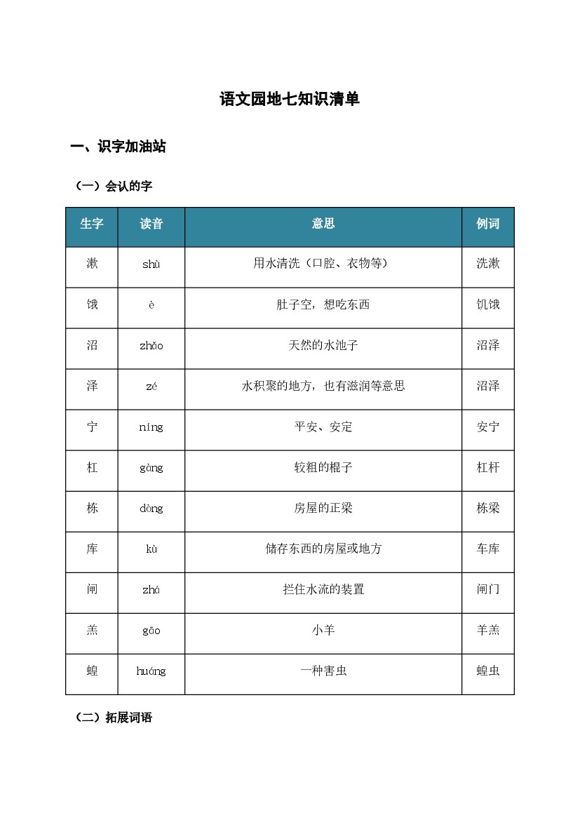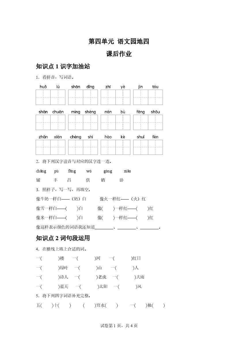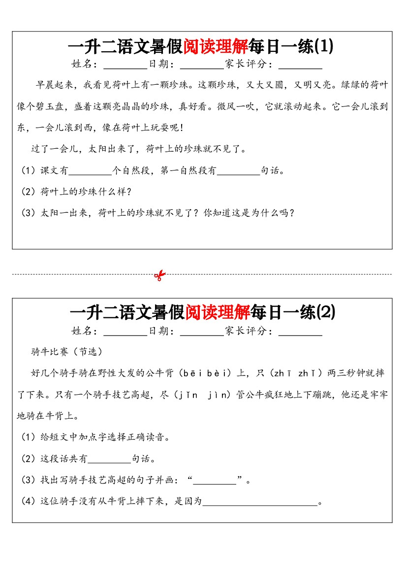 一升二语文暑假预习必背课文闯关表(启智星途)