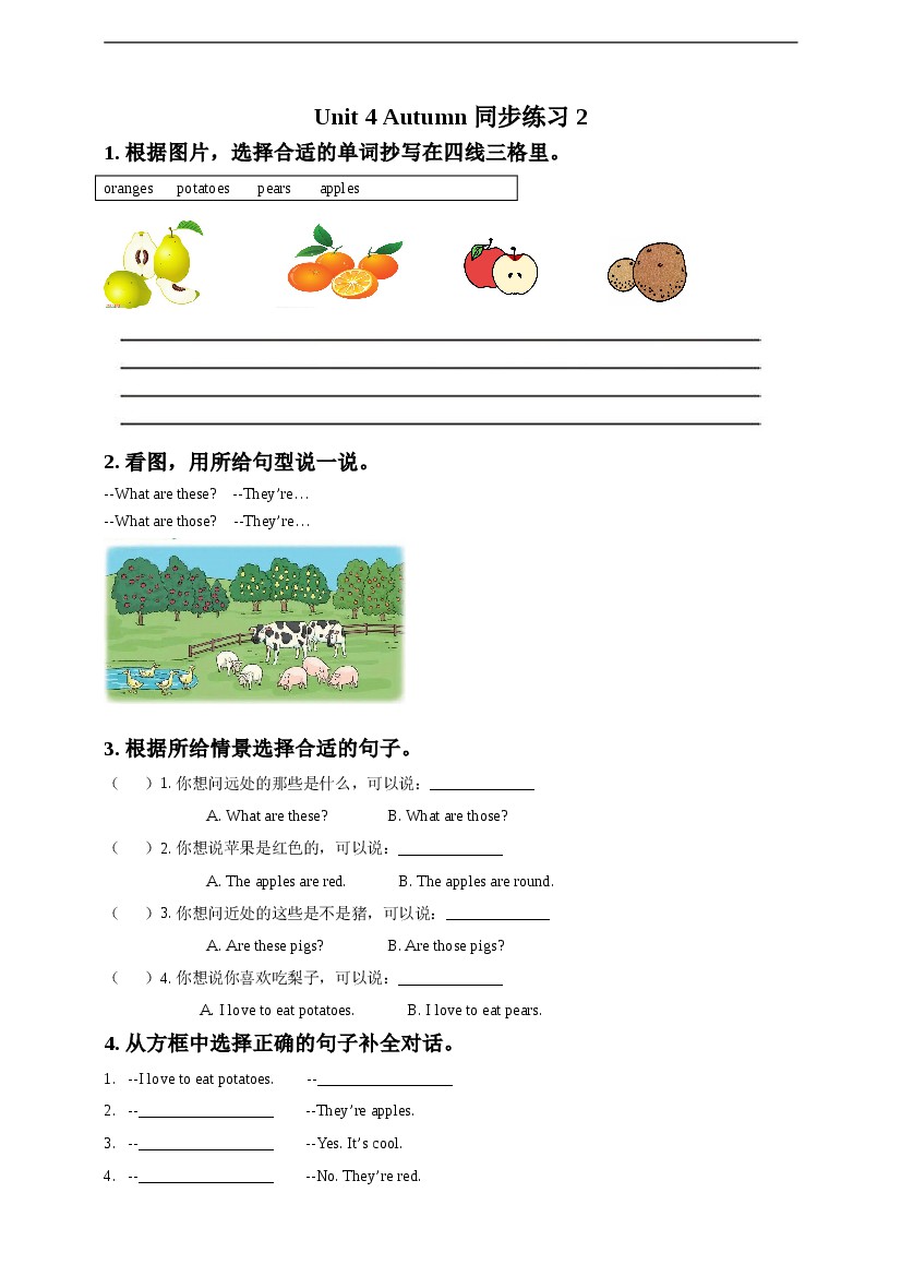 25年秋【二上英语】【译林版】Unit 4 Autumn Fun time& Song time