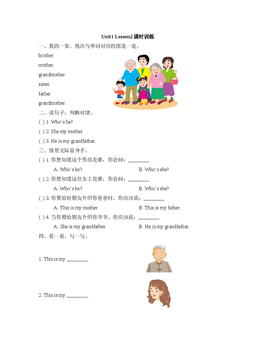 25年秋【二上英语】【人教新起点】Unit1_Lesson2课时训练