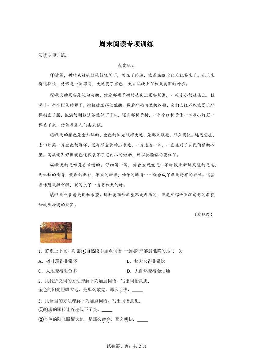 25秋【三上语文】单元主题阅读-第5单元(主题阅读)
