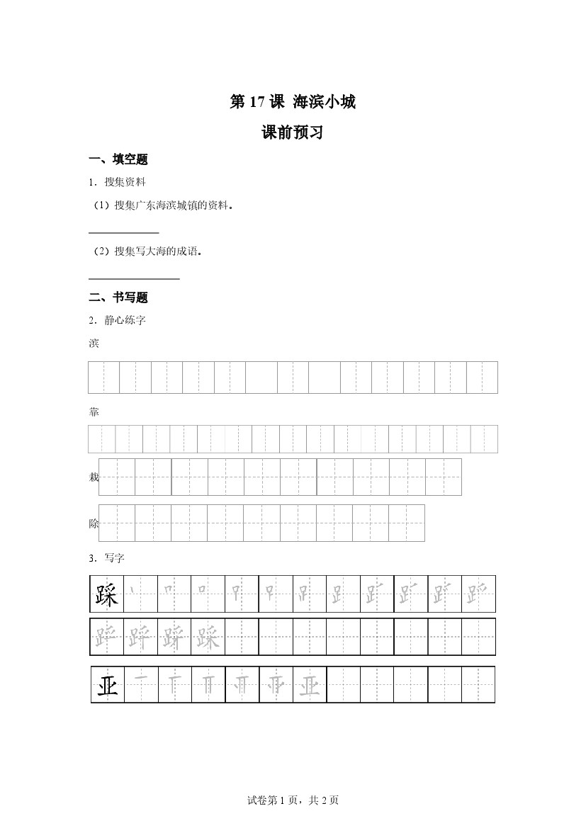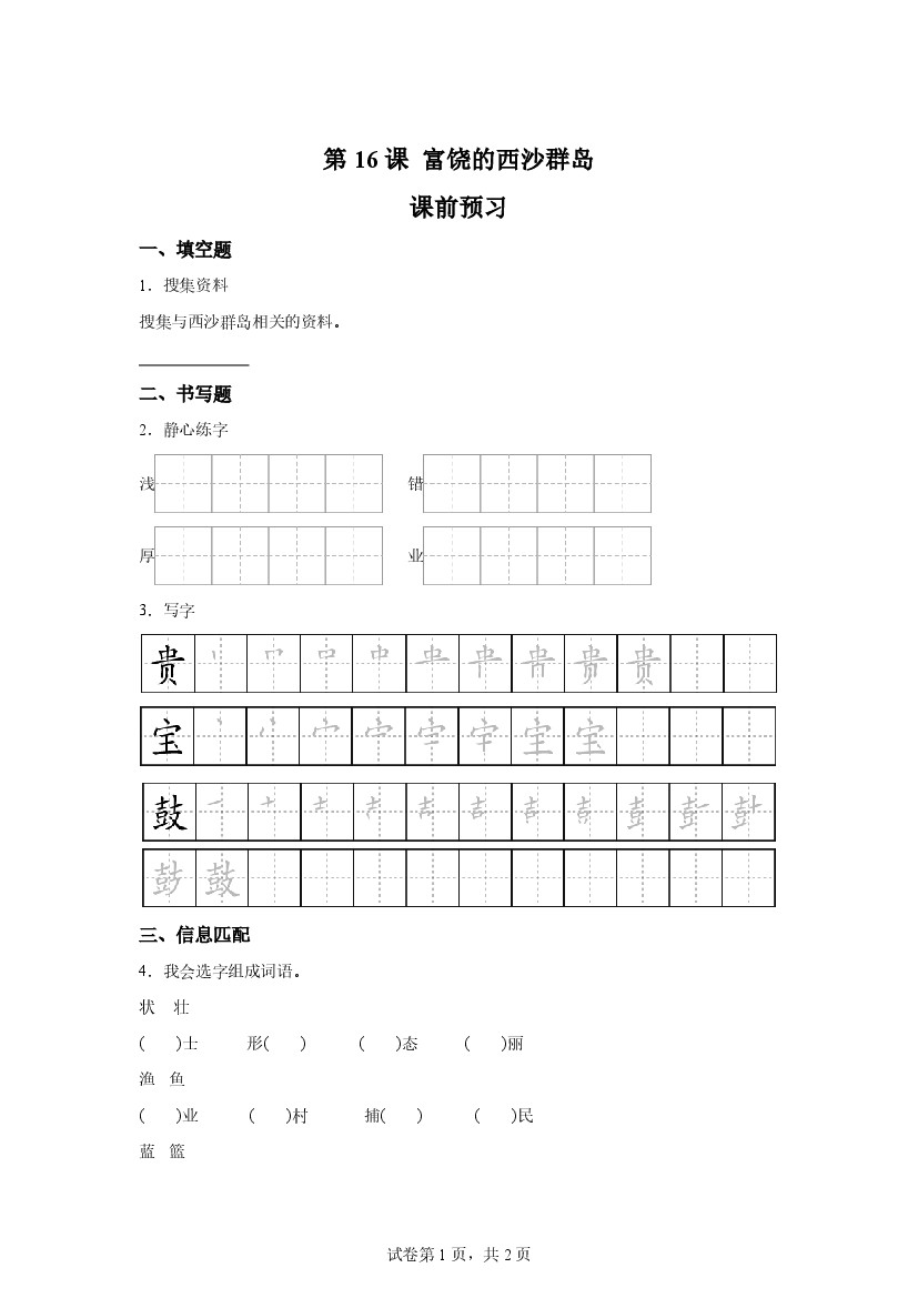25年秋【三上语文】第16课 富饶的西沙群岛课前预习