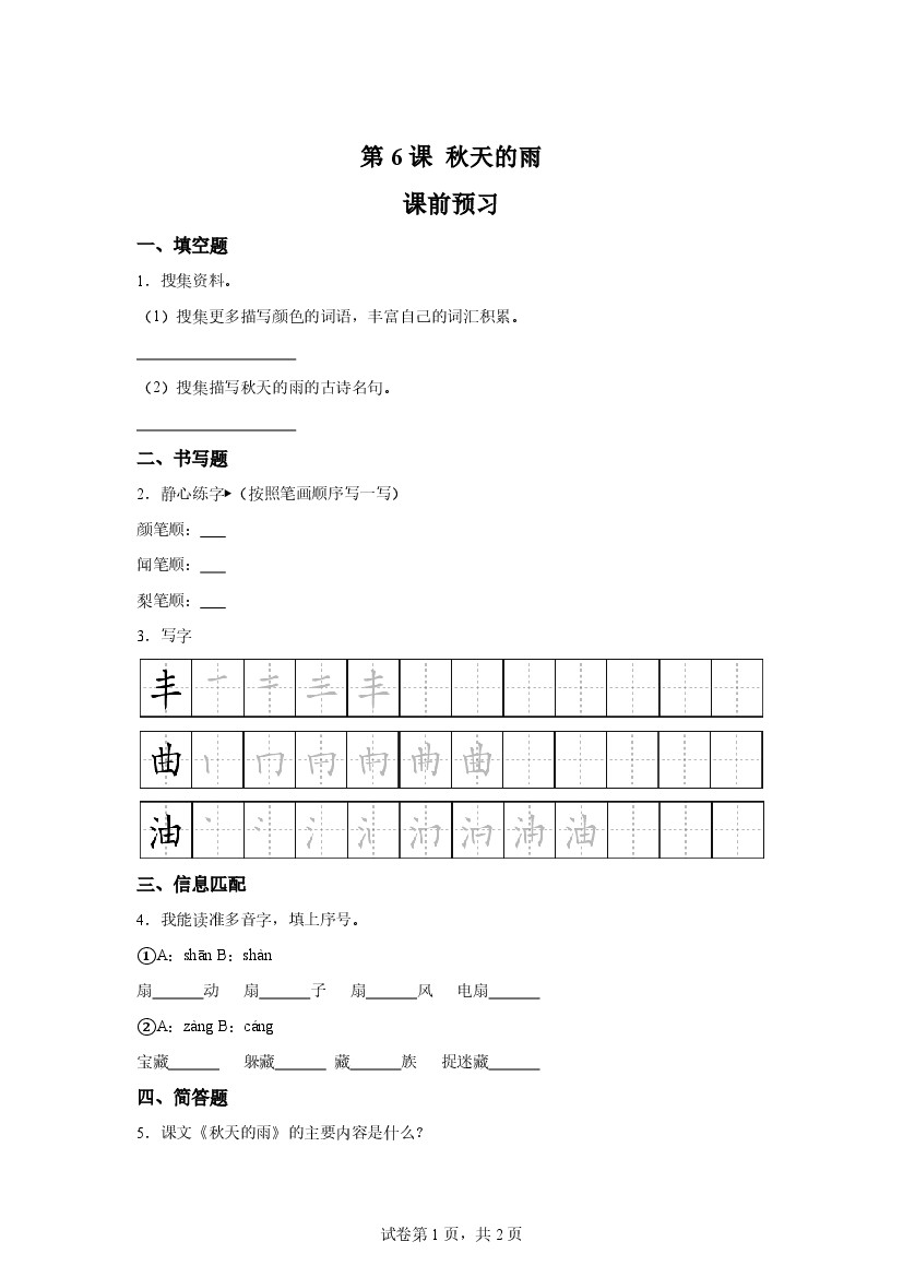 25年秋【三上语文】第6课 秋天的雨课前预习
