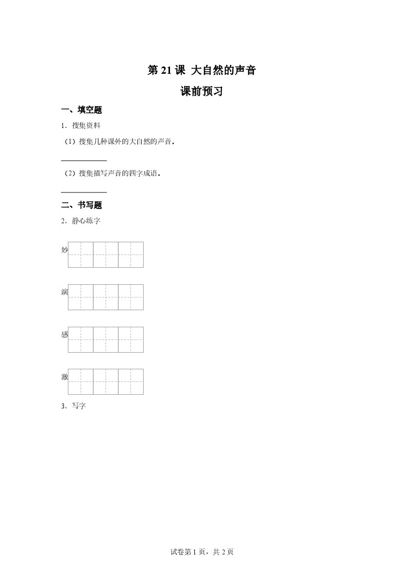 25年秋【三上语文】第21课 大自然的声音课前预习