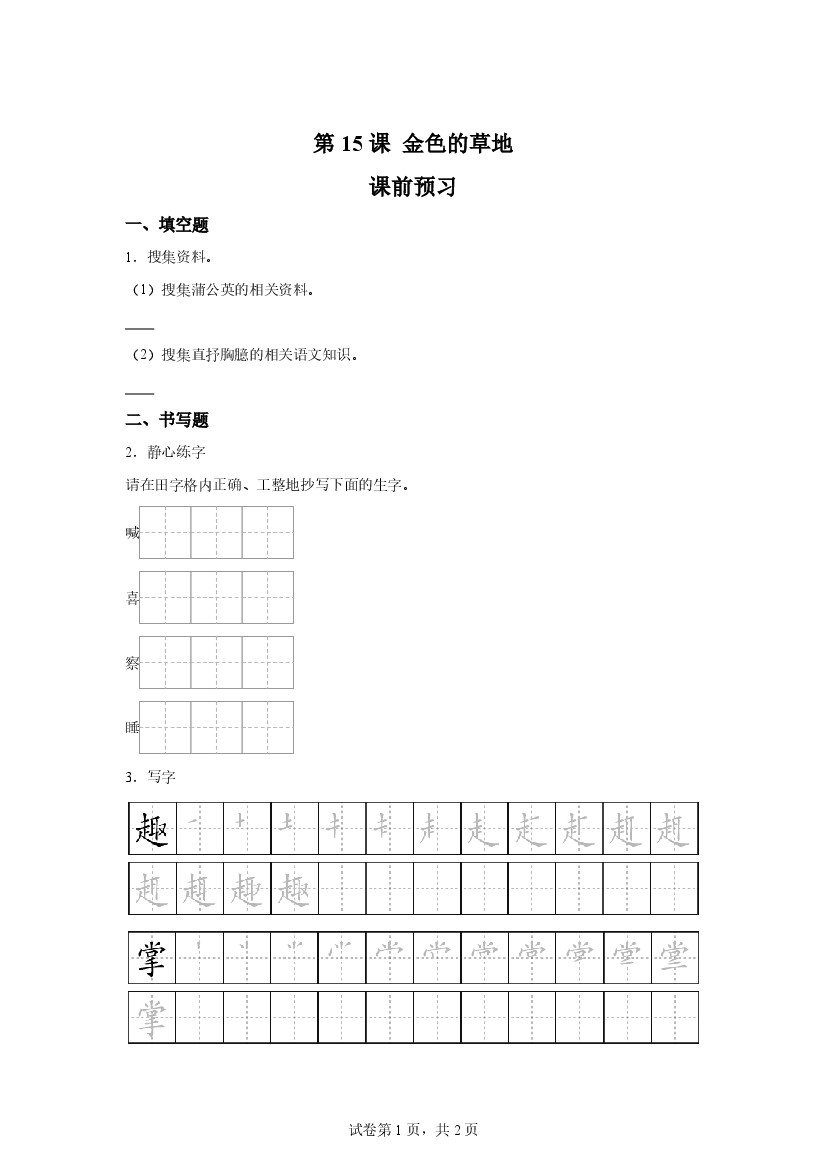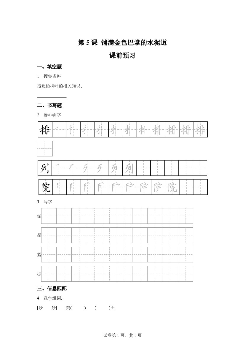 25年秋【三上语文】第5课 铺满金色巴掌的水泥道课前预习