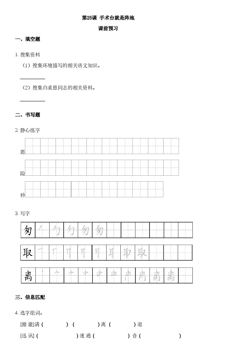 25年秋【三上语文】第25课 手术台就是阵地课前预习