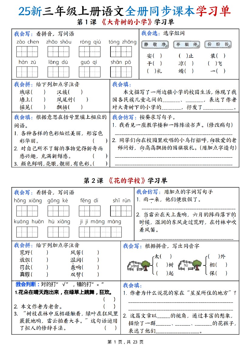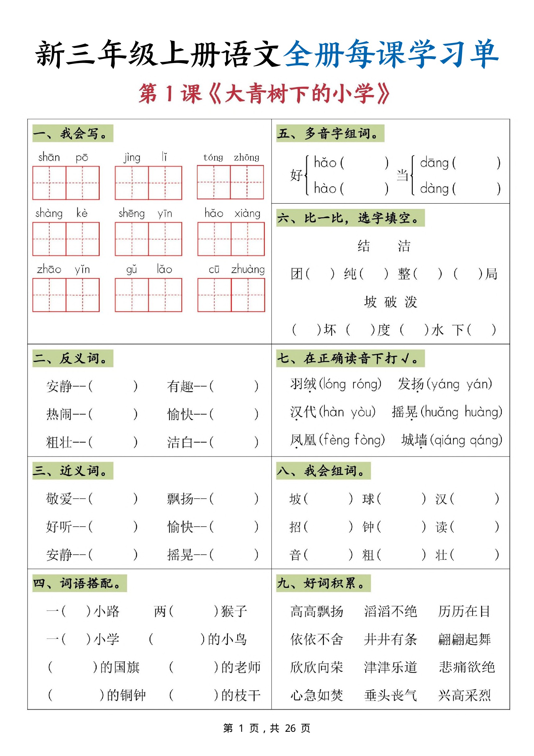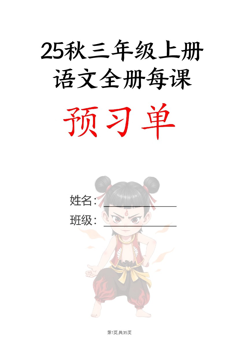 三年级语文人教版上册25秋《课本预习笔记》预习单