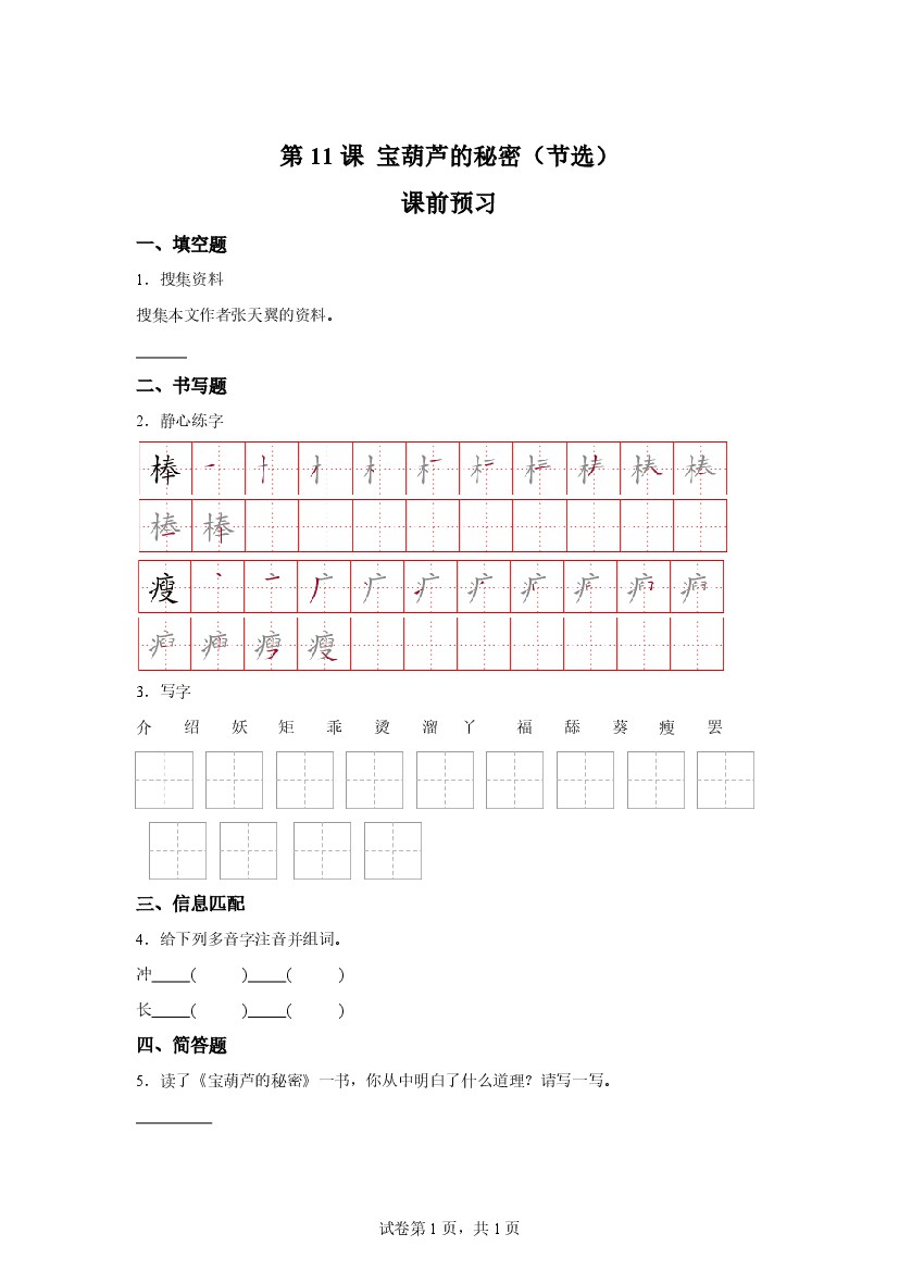 25年秋【三上语文】第11课 宝葫芦的秘密(节选)课前预习