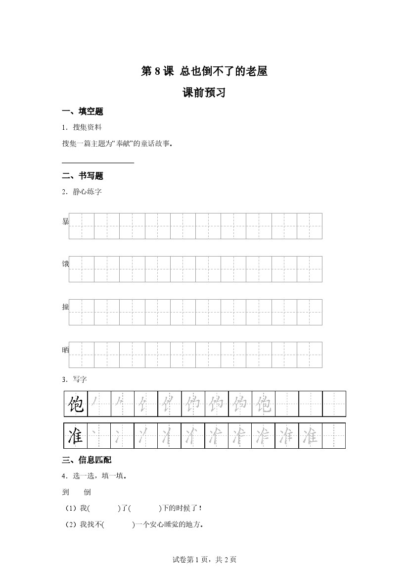 25年秋【三上语文】第8课 总也倒不了的老屋课前预习