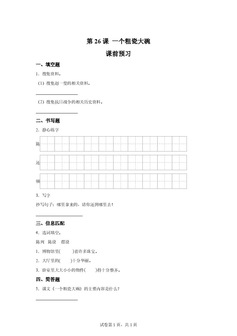 25年秋【三上语文】第26课 一个粗瓷大碗课前预习