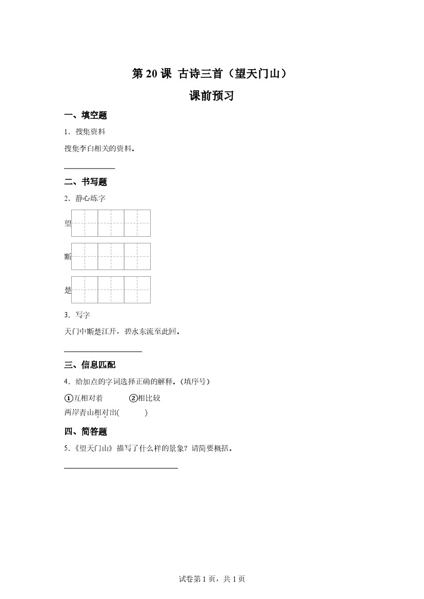 25年秋【三上语文】第20课 古诗三首(望天门山)课前预习