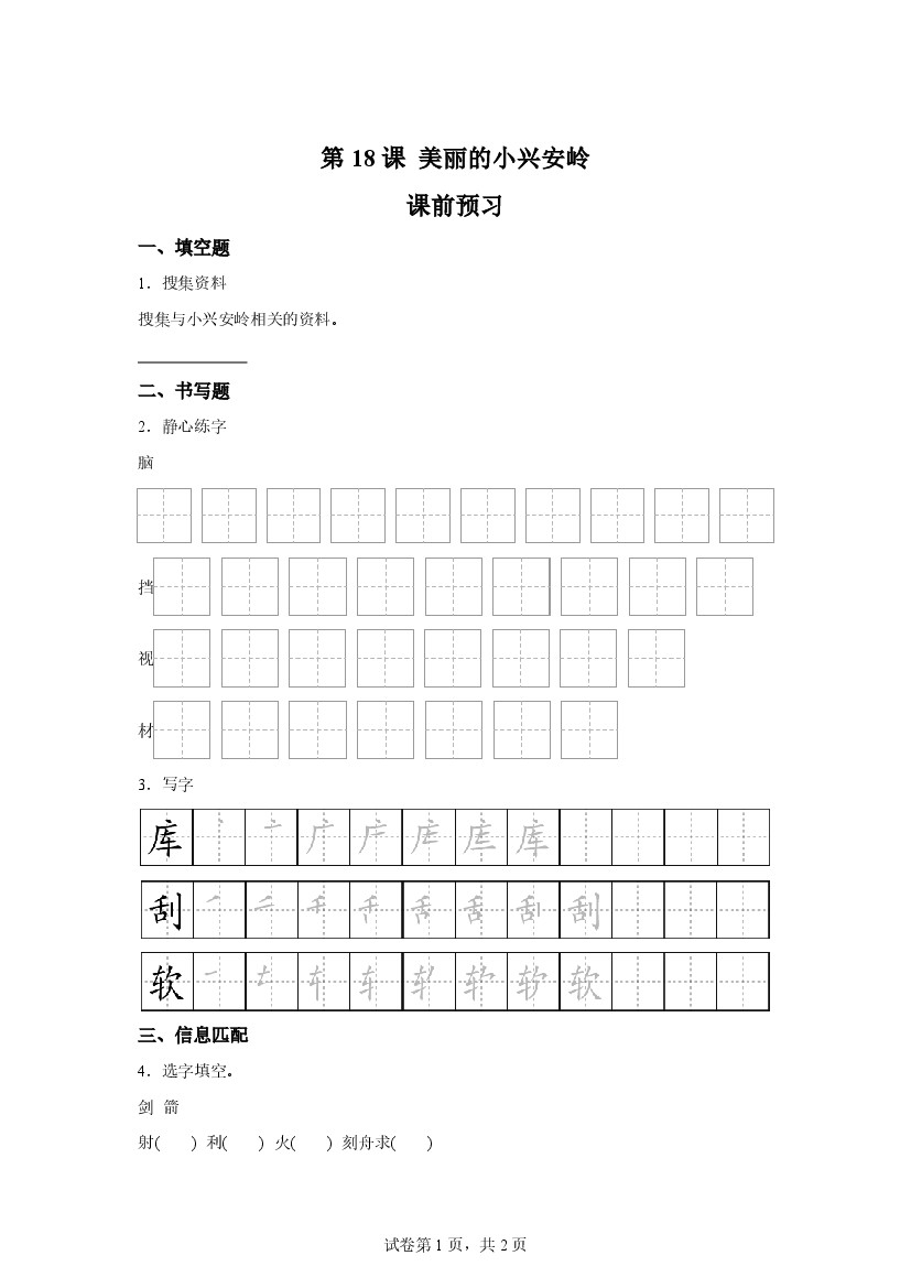 25年秋【三上语文】第18课 美丽的小兴安岭课前预习