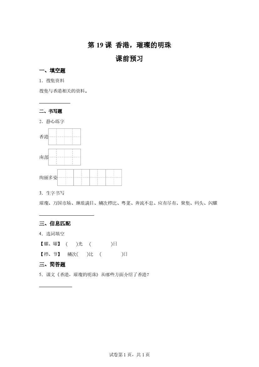 25年秋【三上语文】第19课 香港,璀璨的明珠课前预习