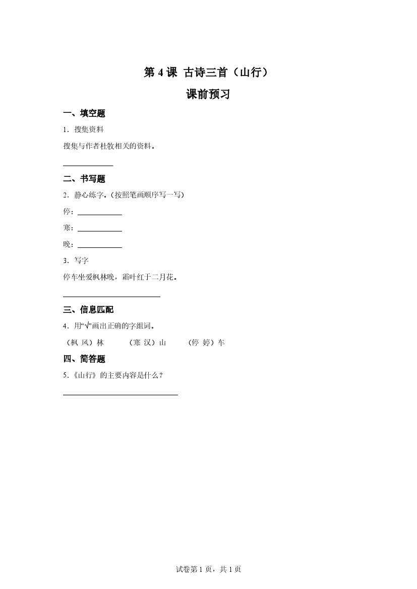 25年秋【三上语文】第4课 古诗三首(山行)课前预习