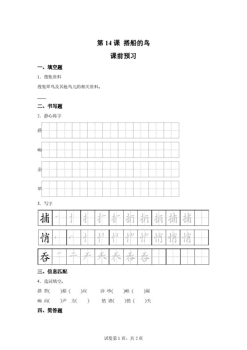 25年秋【三上语文】第14课 搭船的鸟课前预习