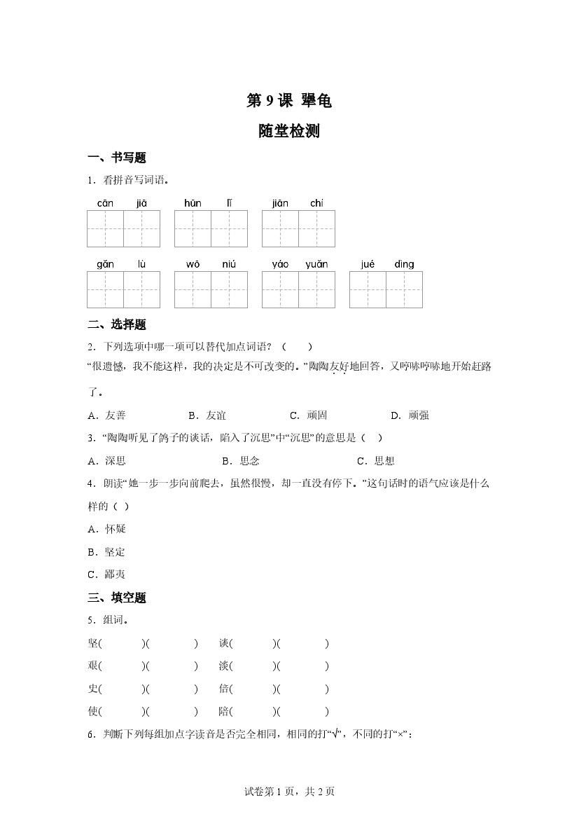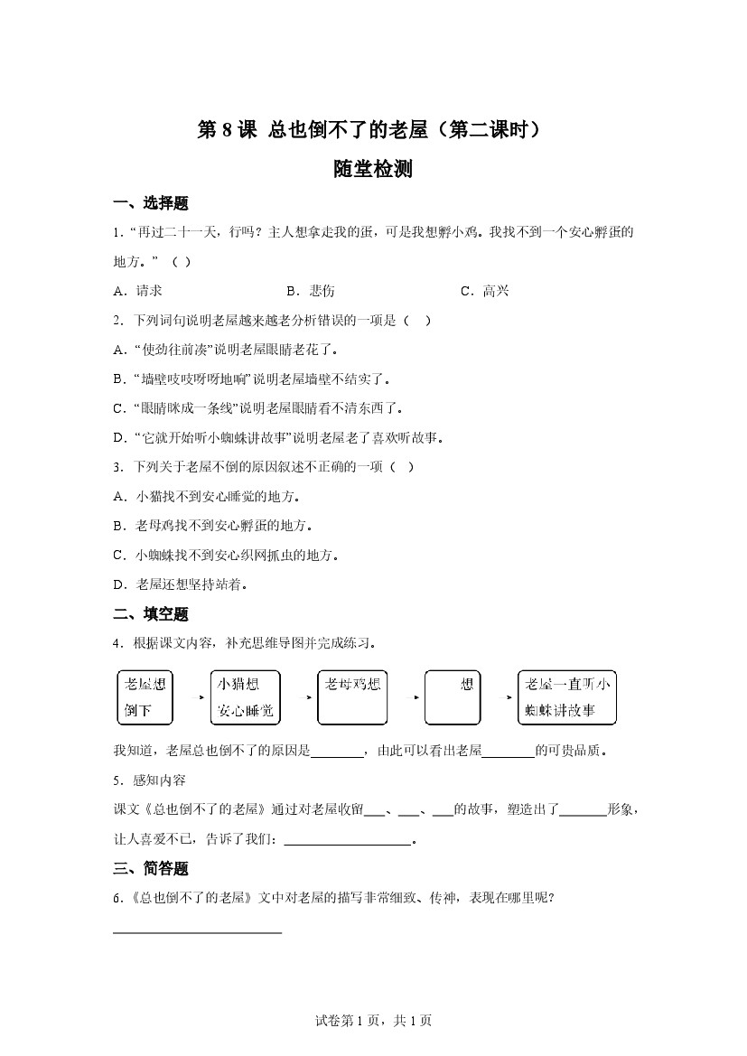 25年秋【三上语文】第8课 总也倒不了的老屋(第二课时)随堂检测