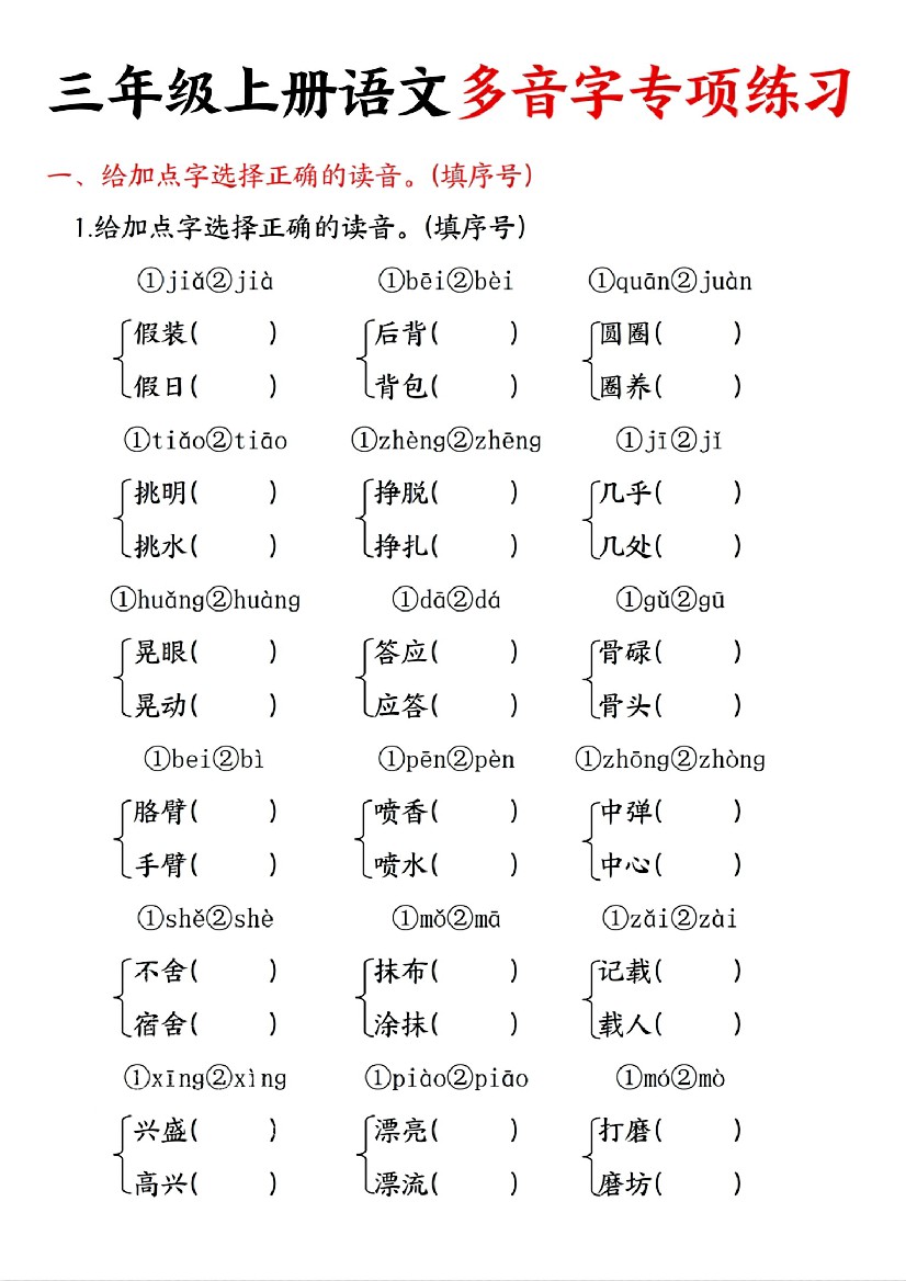 三年级(上)语文多音字专项练习