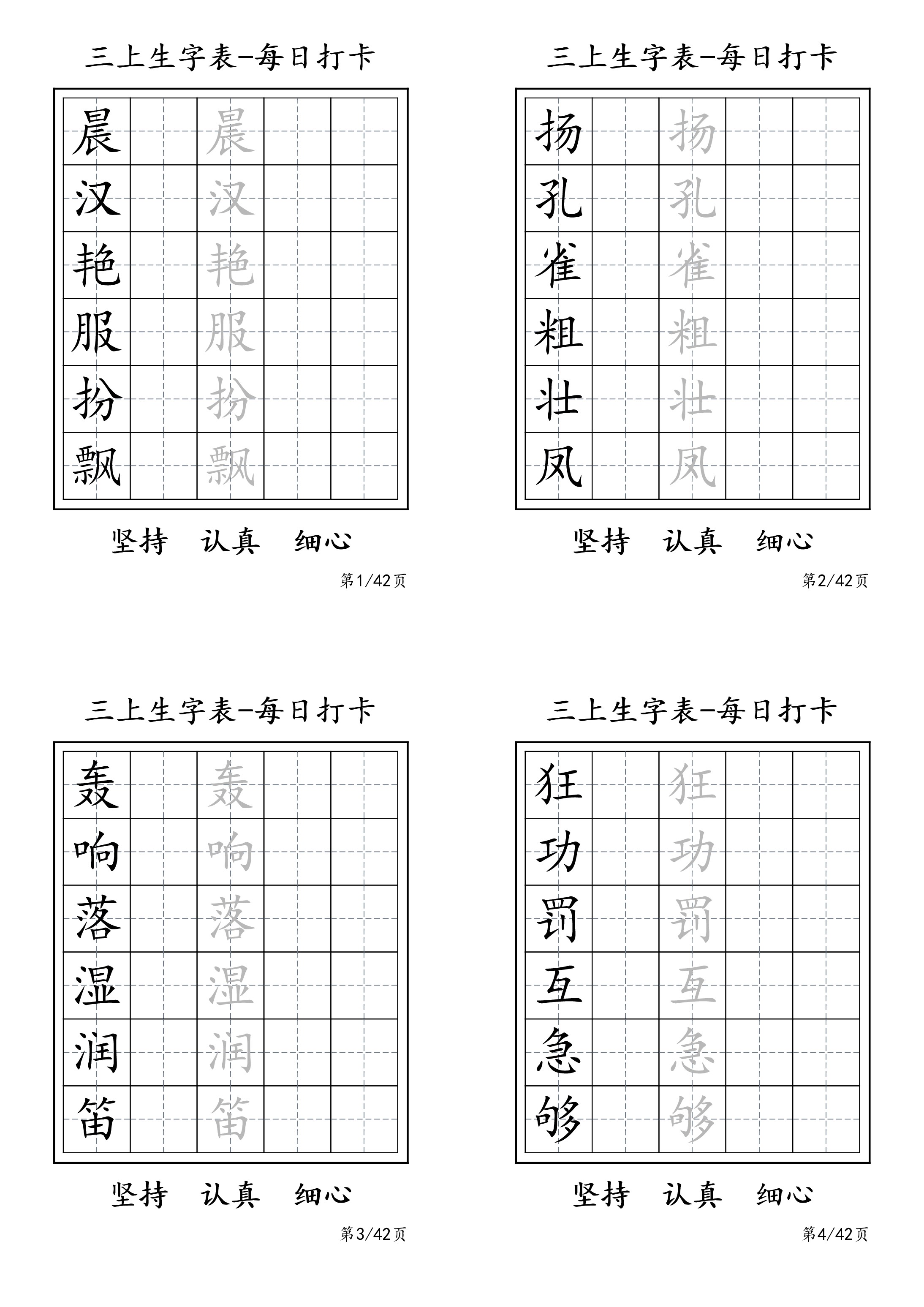 三年级上册生字表每日打卡-6字