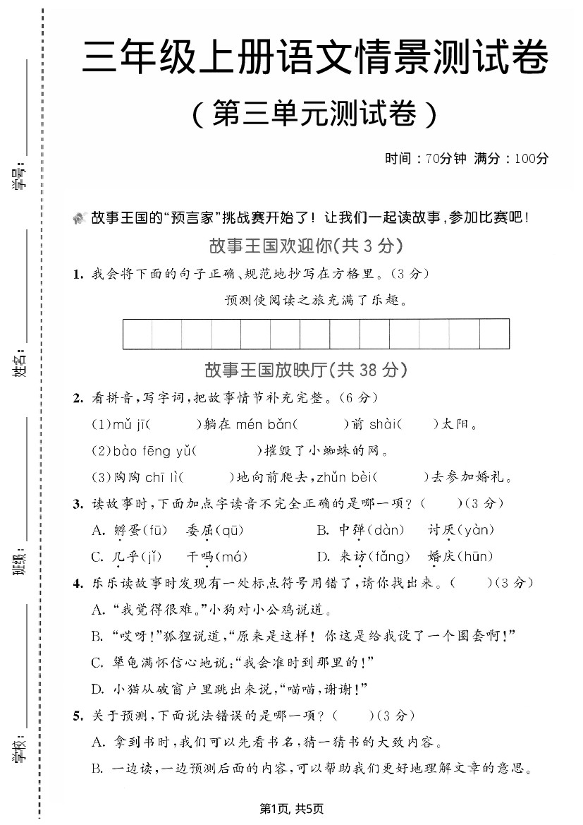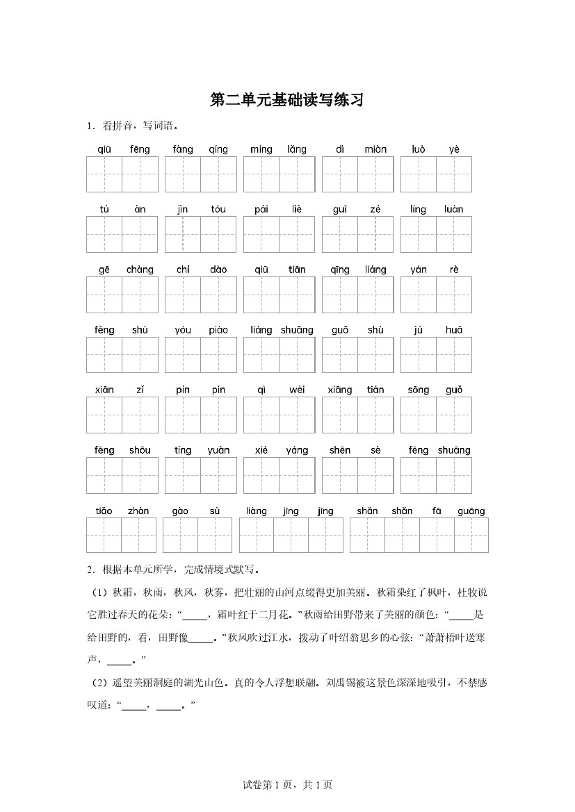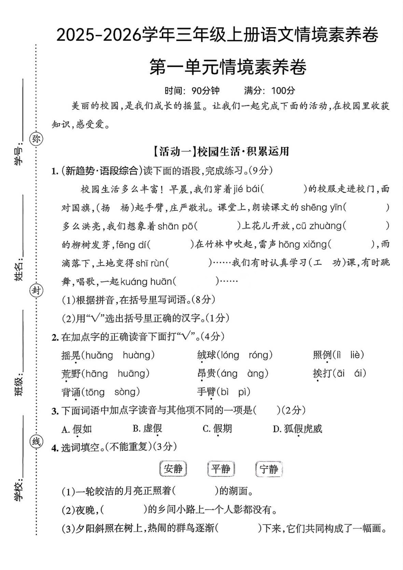【25秋三上语文课后词语表情景默写通关小单(含答案21页)