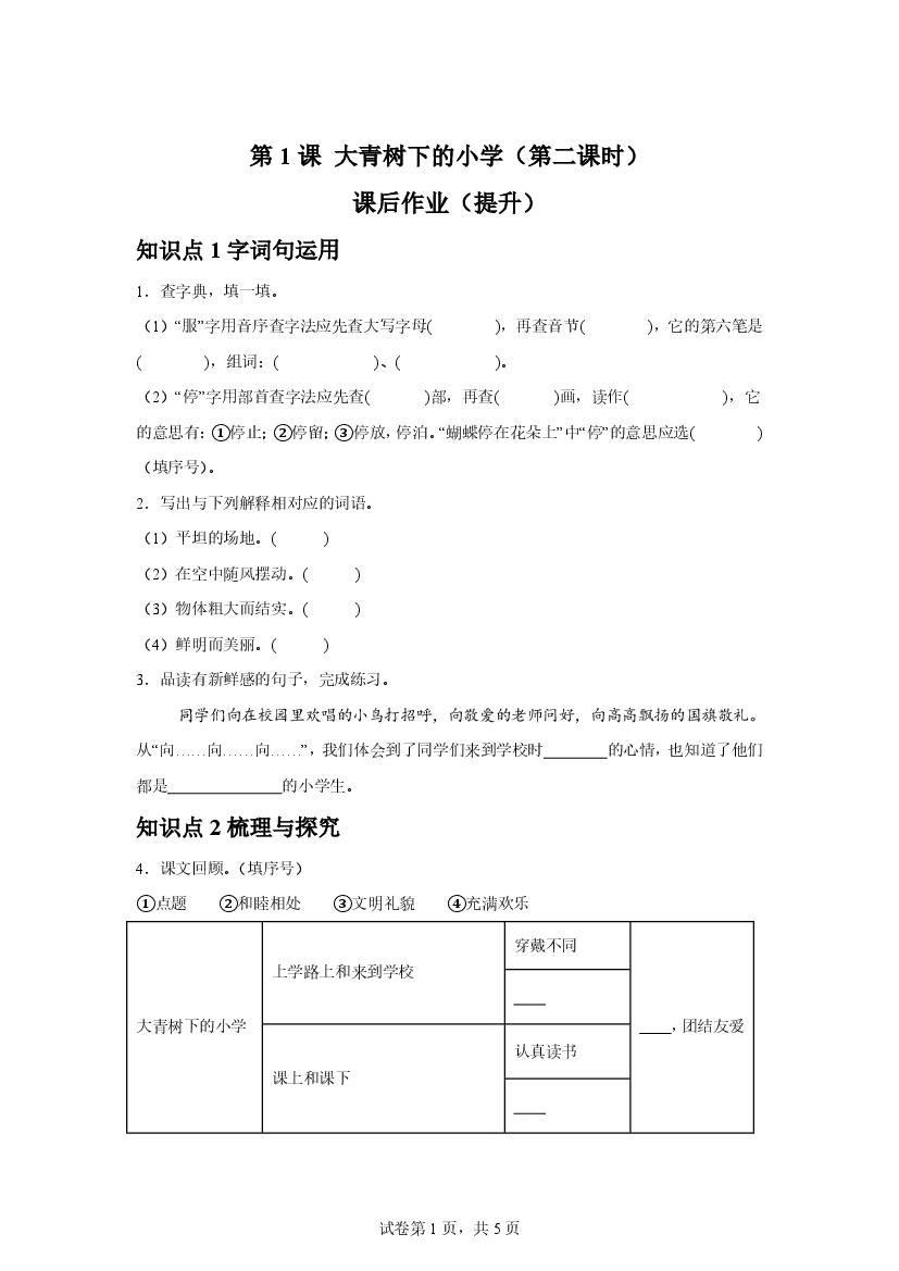 25年秋【三上语文】第1课 大青树下的小学(第二课时)课后作业(提升)