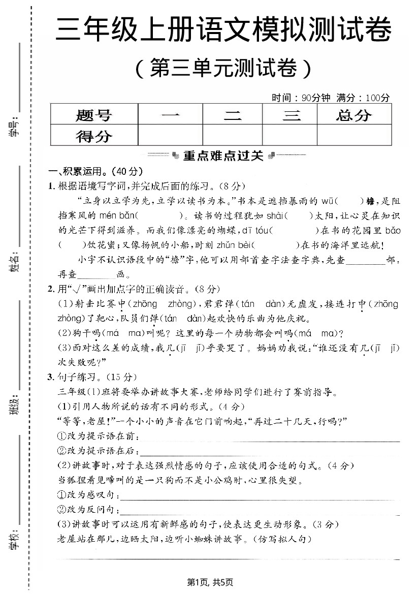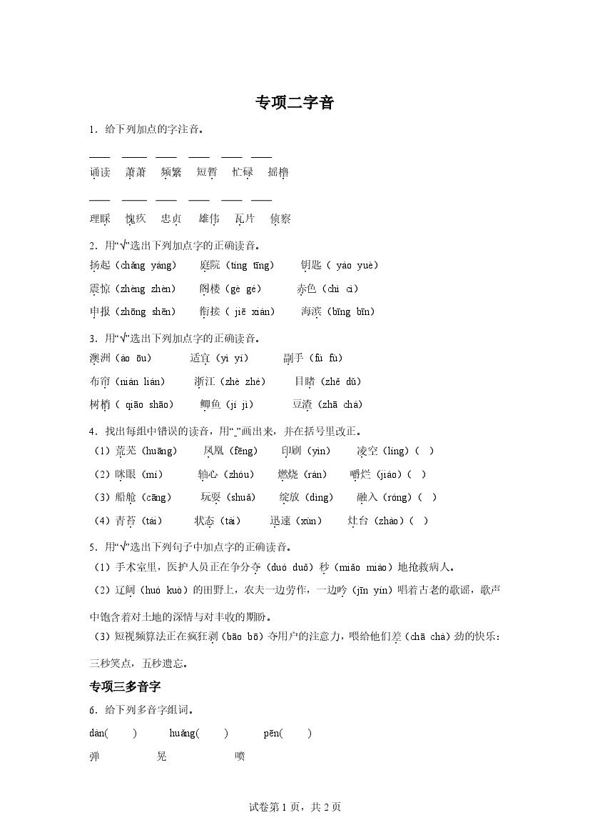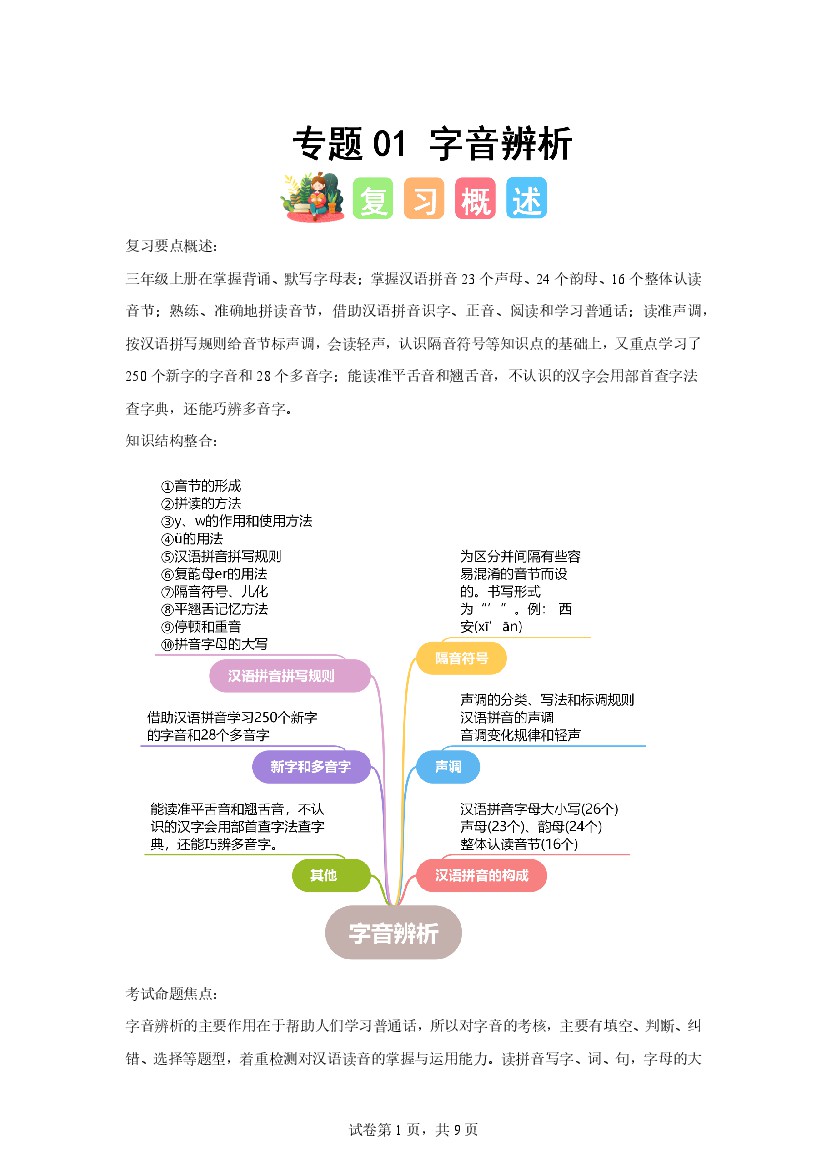 专题01 字音辨析-2025年三年级语文寒假专项提升(统编版)