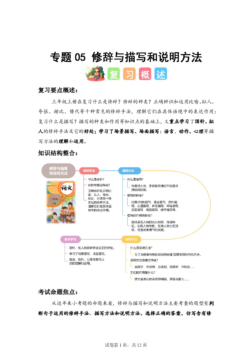 专题05 修辞与描写和说明方法-2025年三年级语文寒假专项提升(统编版)