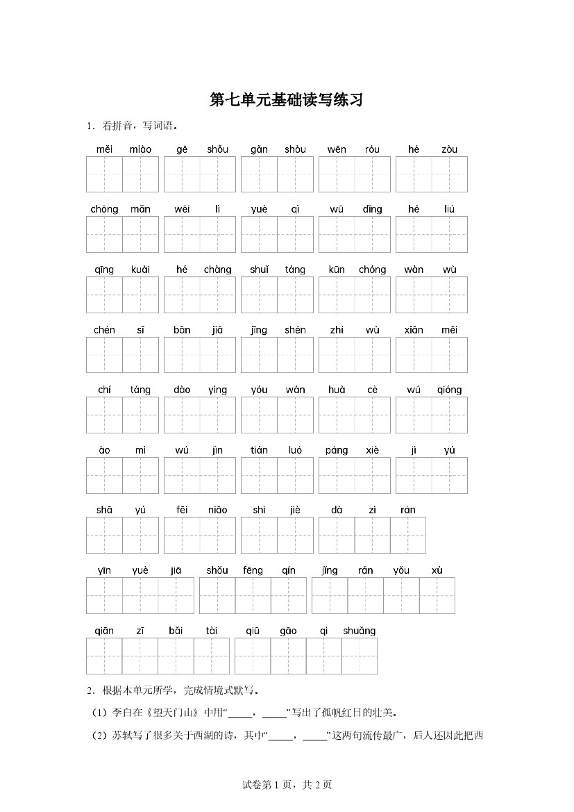 25年秋【三上语文】专项训练:专项六 古诗名句情境默写