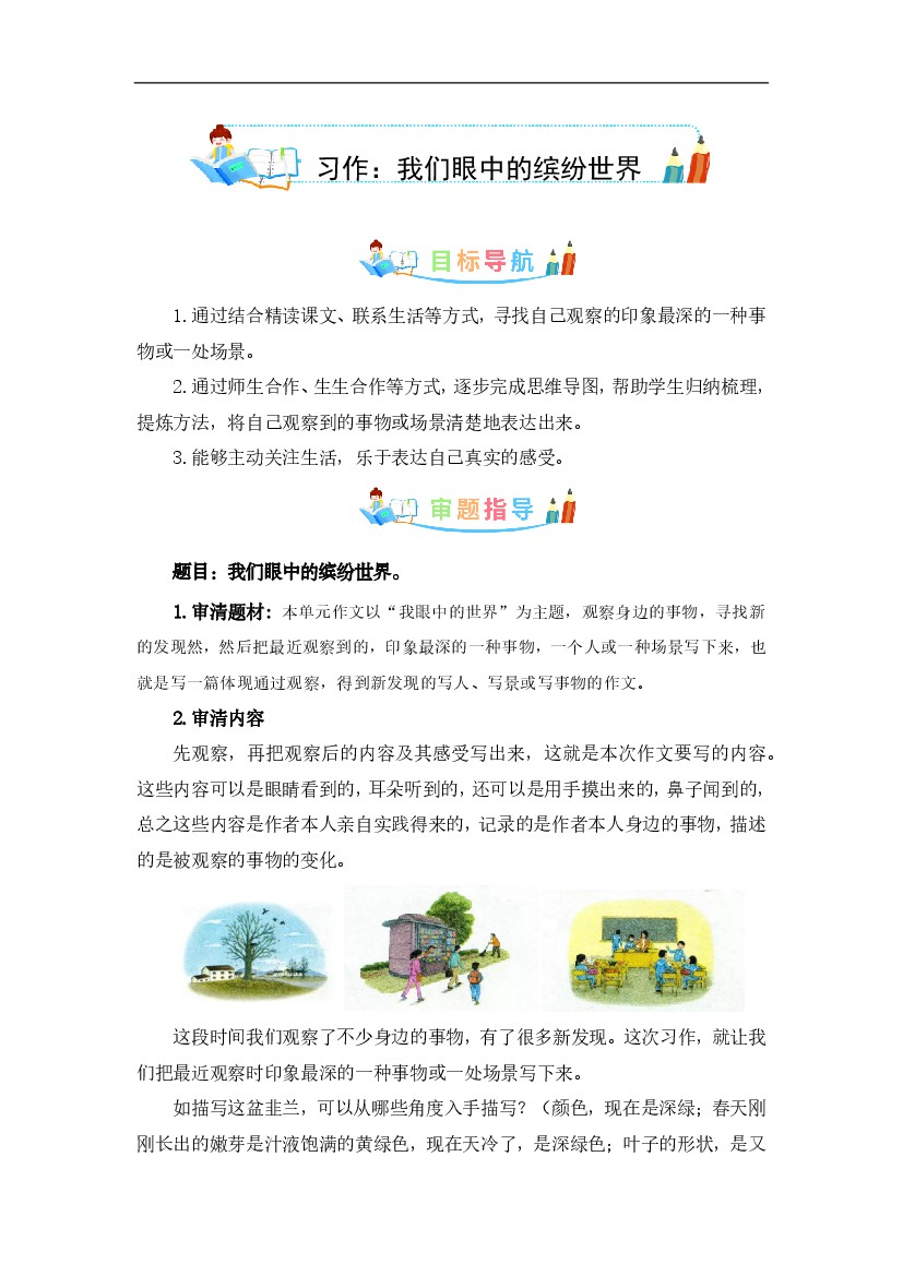 人教部编版三年级语文上册第5单元同步作文:我们眼中的缤纷世界 写作指导+范文赏析+病文升格(学生版)-部编版语文三年级上册