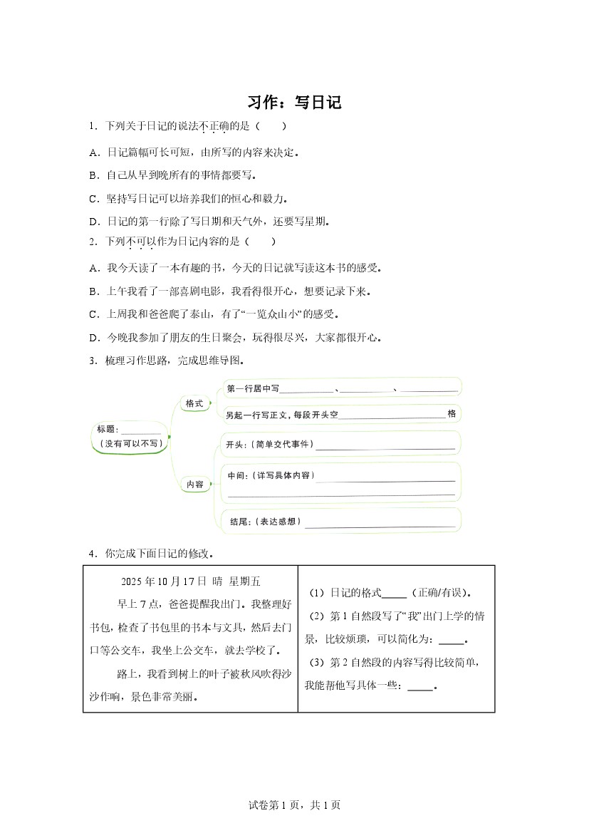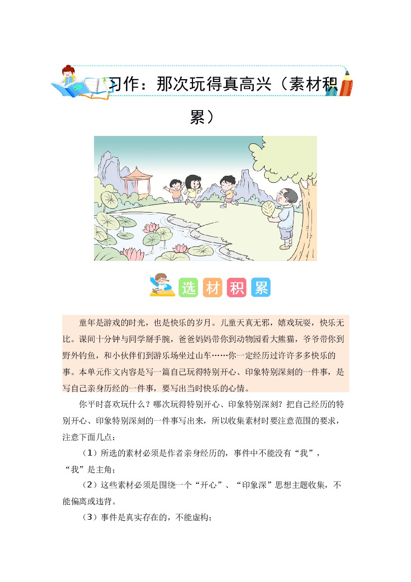 25秋【三上语文】单元写作能力提升-第八单元习作:那次玩得真高兴(素材积累)-(统编版)