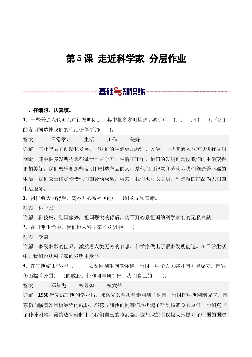 25秋三年级上册道法同步练习第5课 走近科学家(教师版)