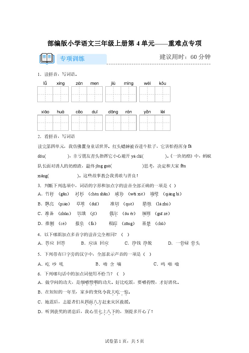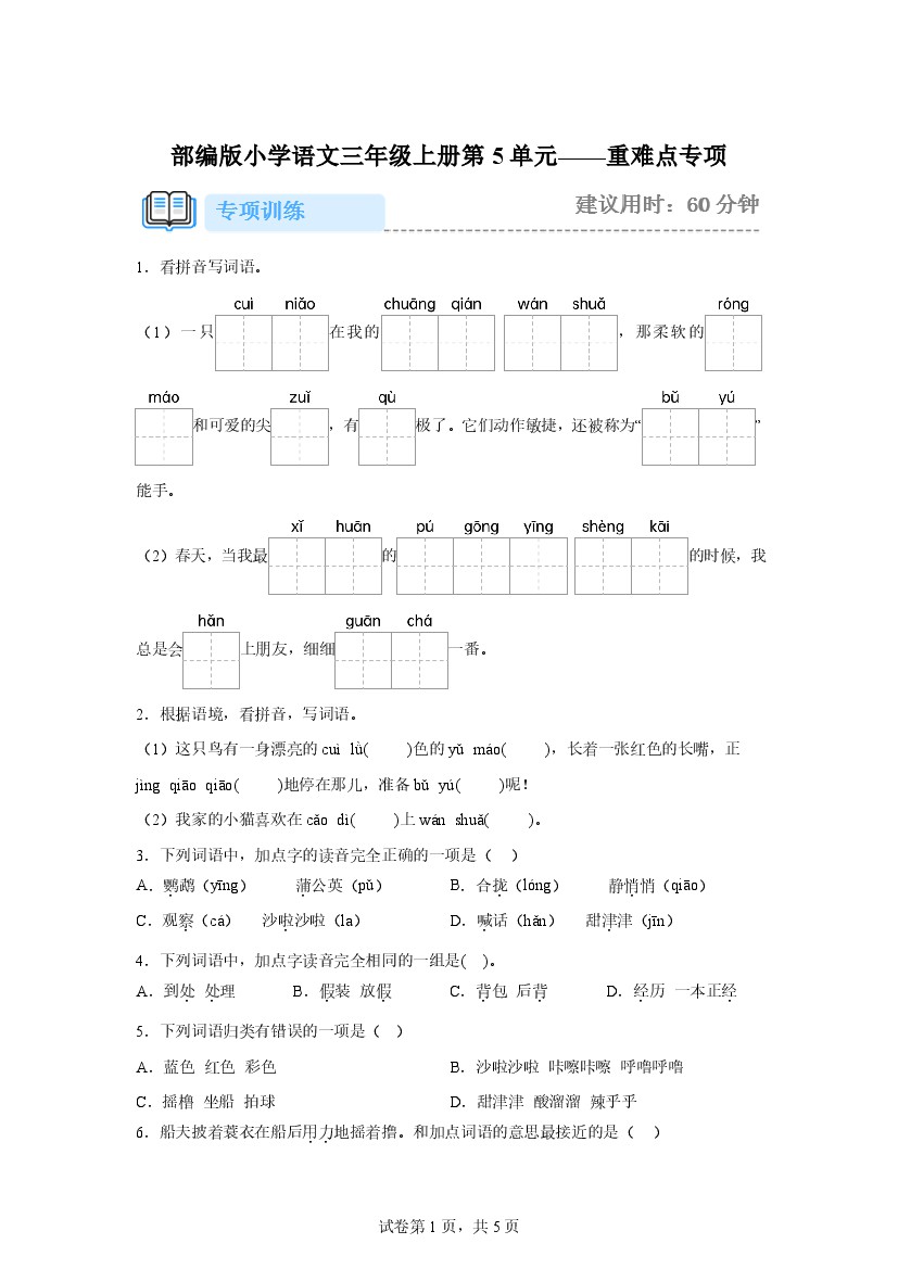 25秋【三上语文】单元写作能力提升-第六单元习作:这儿真美(素材积累)-(统编版)