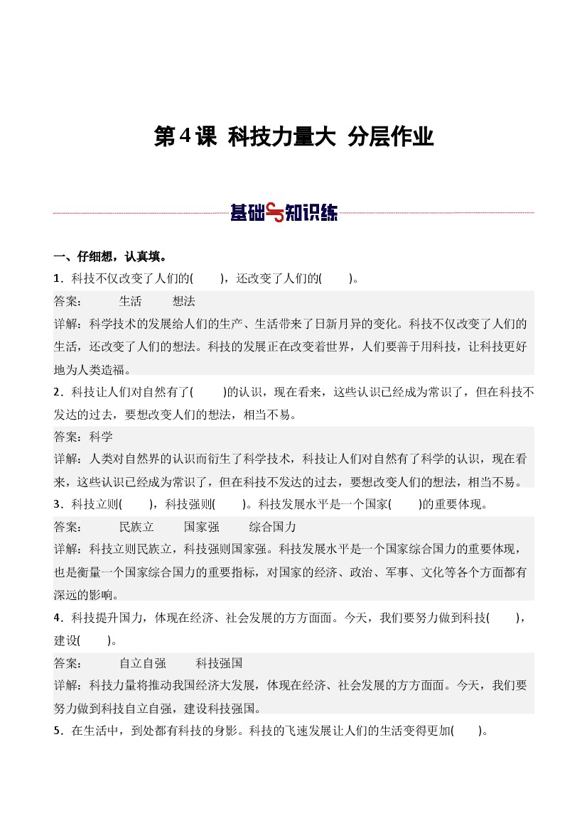 25秋三年级上册道法同步练习第4课 科技力量大(教师版)