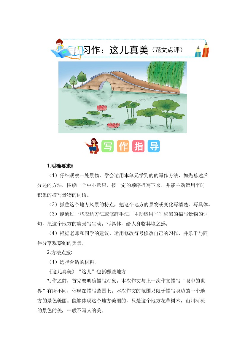 25秋【三上语文】单元写作能力提升-第六单元习作:这儿真美(范文点评)-(统编版)
