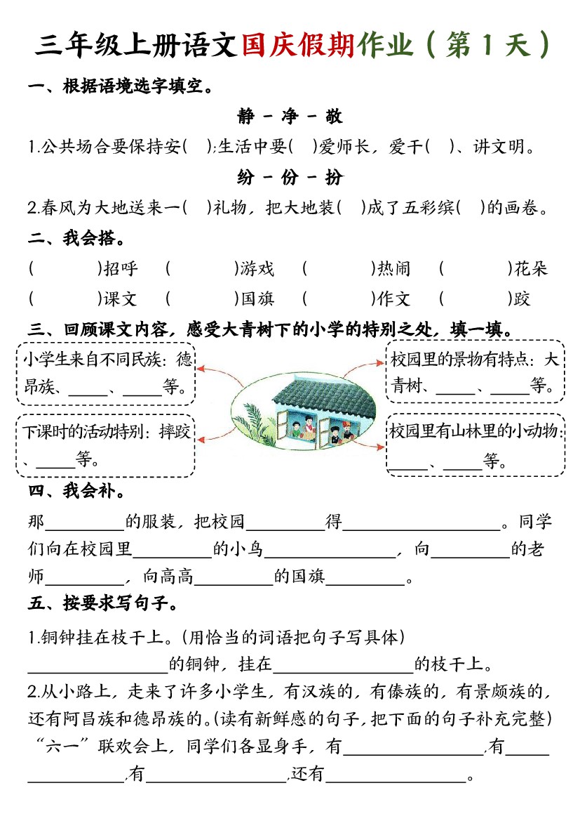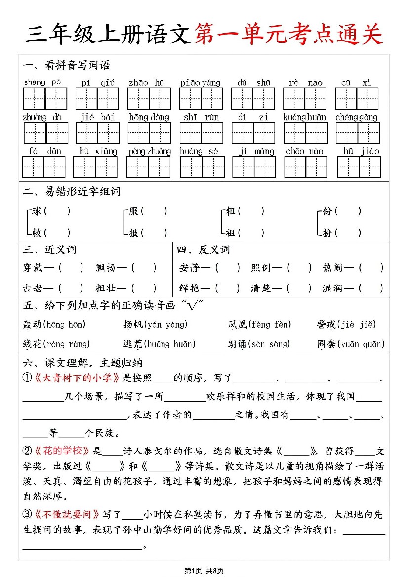 【25新三上语文期中课内阅读理解专项(含答案16页)