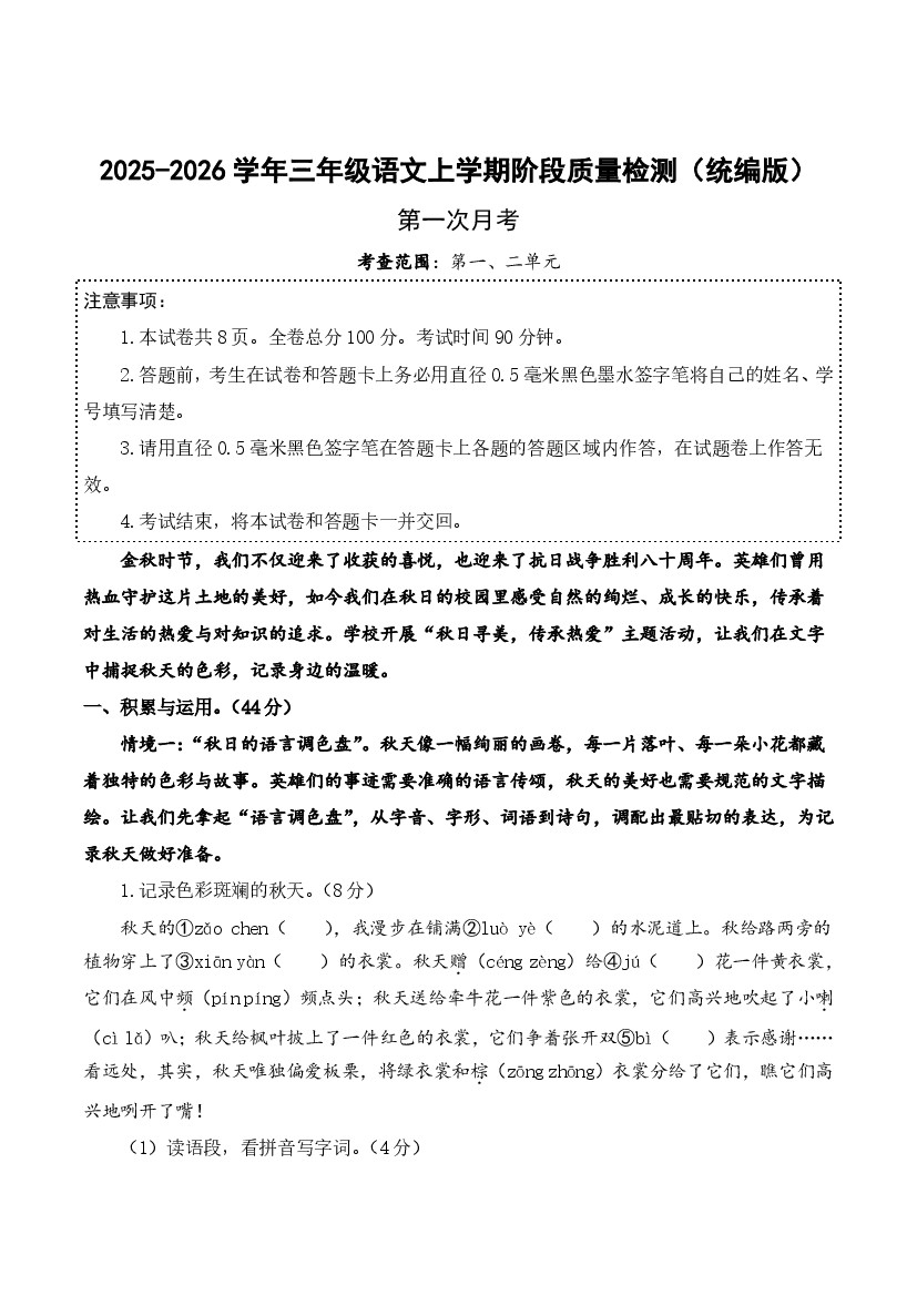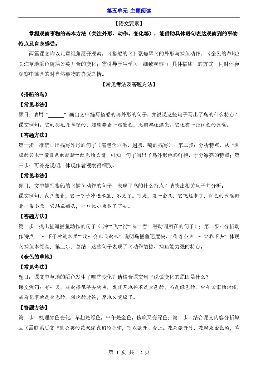 25秋【三上语文】单元主题阅读-第5单元(主题阅读)