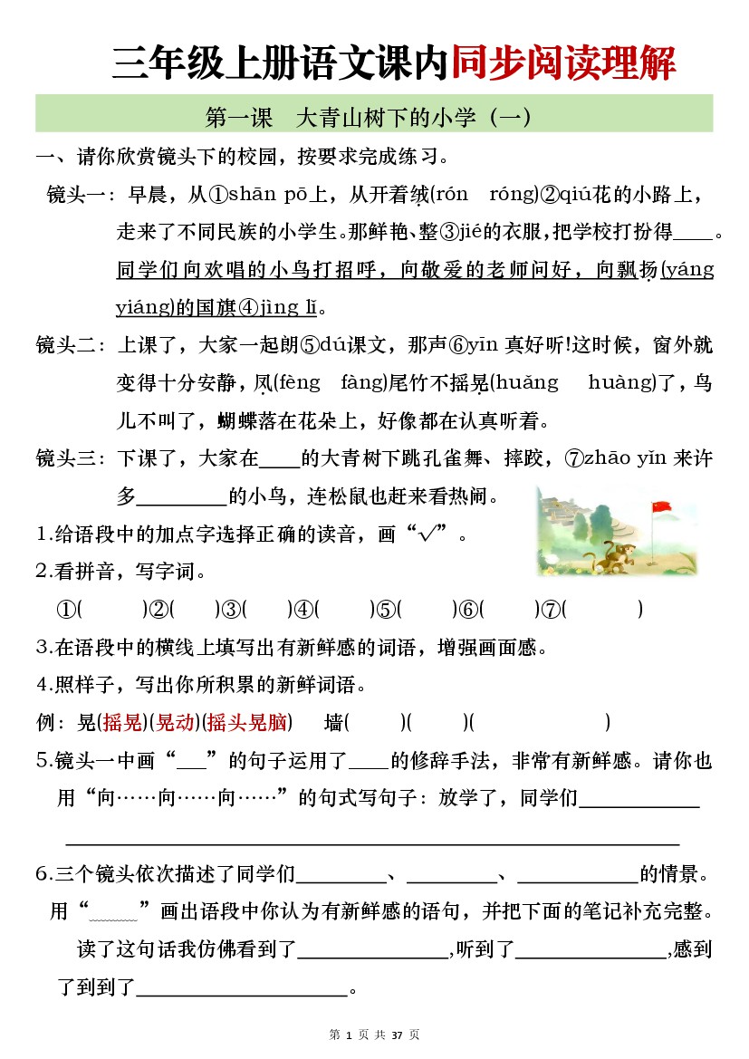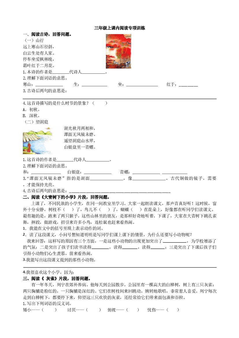 三年级(上)语文 全册1-26课内阅读理解专项训练