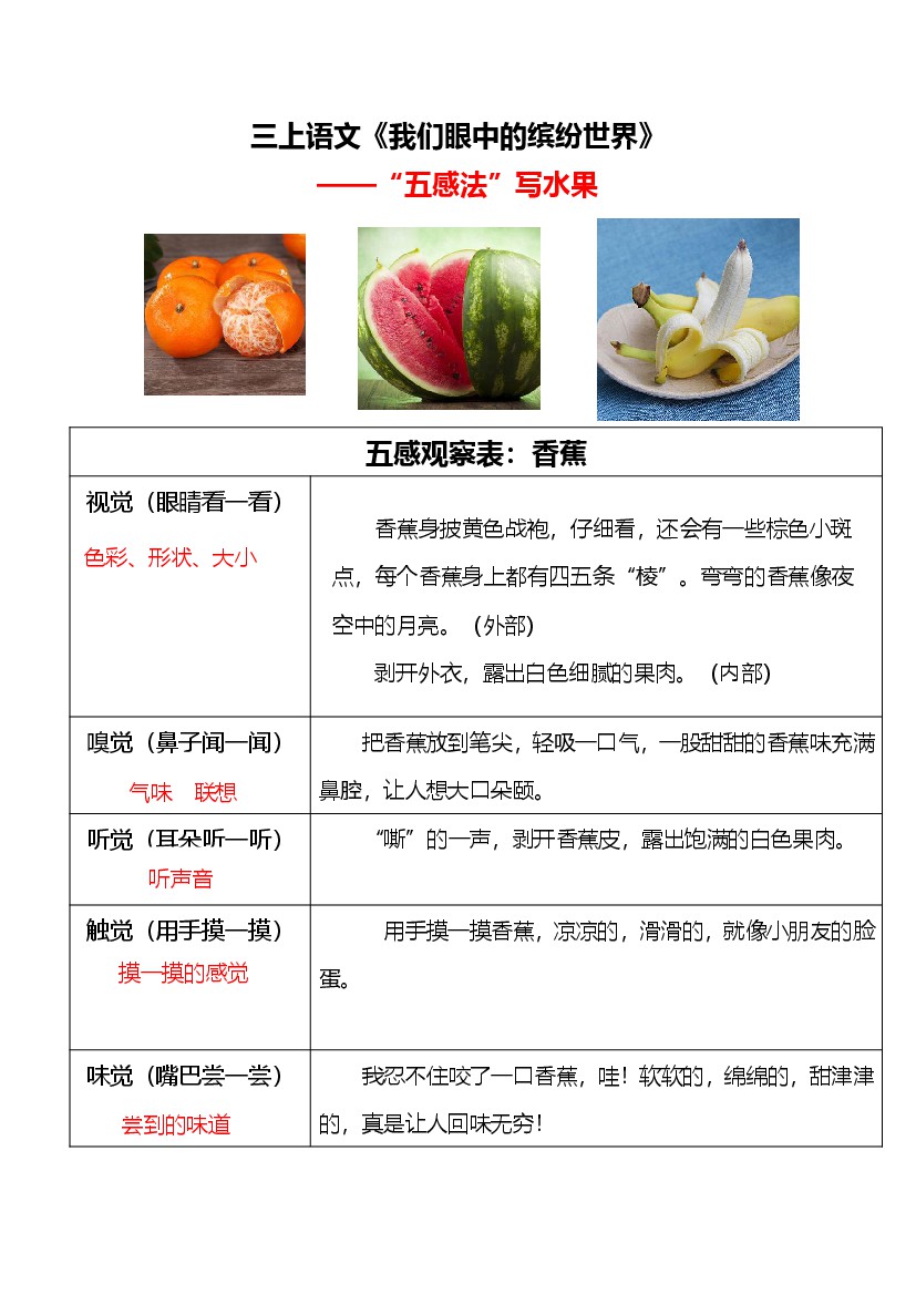 三年级(上)语文 《我们眼中的缤纷世界》五感法写香蕉