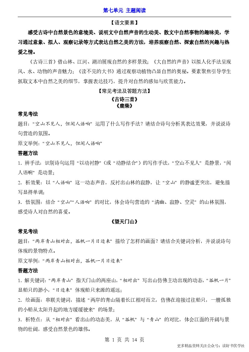 25秋【三上语文】单元主题阅读-第7单元(主题阅读)