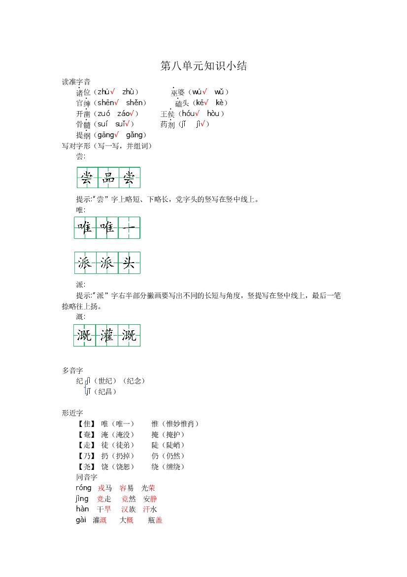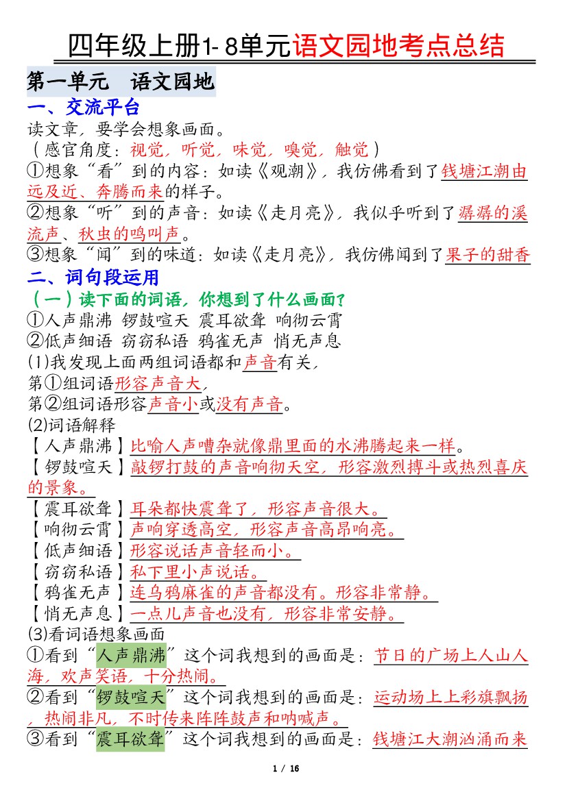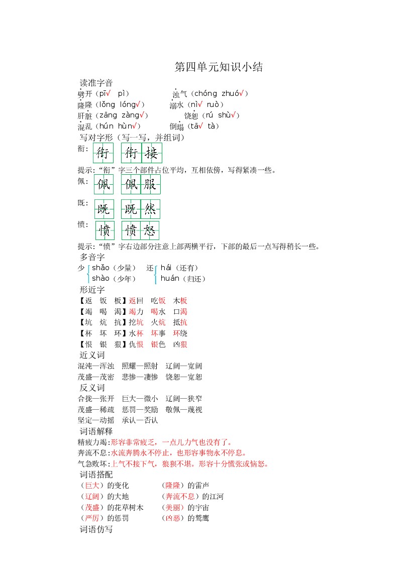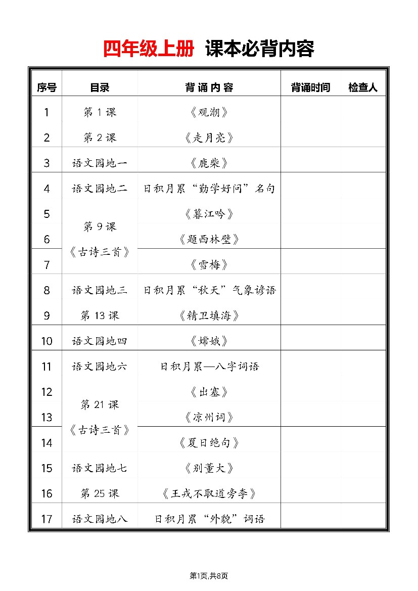四(上)语文知识清单1-8单元