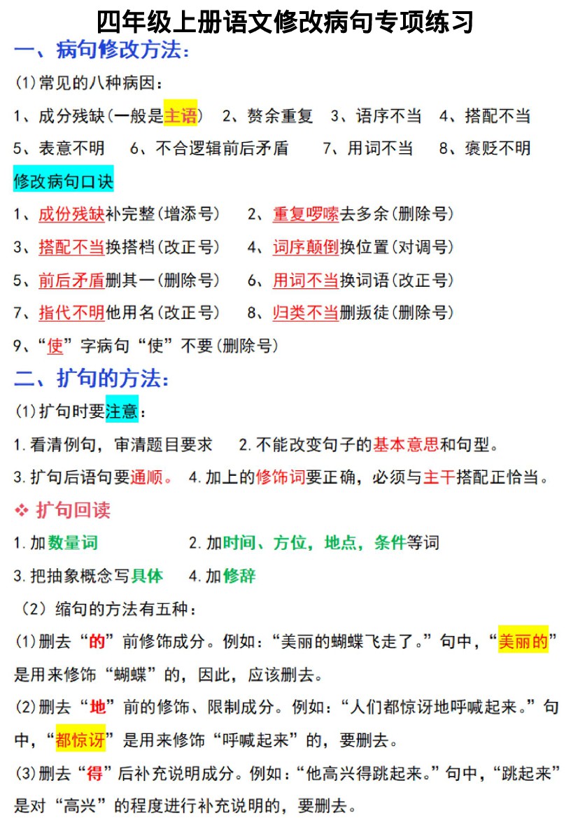 四年级(上)语文 修改病句专项练习