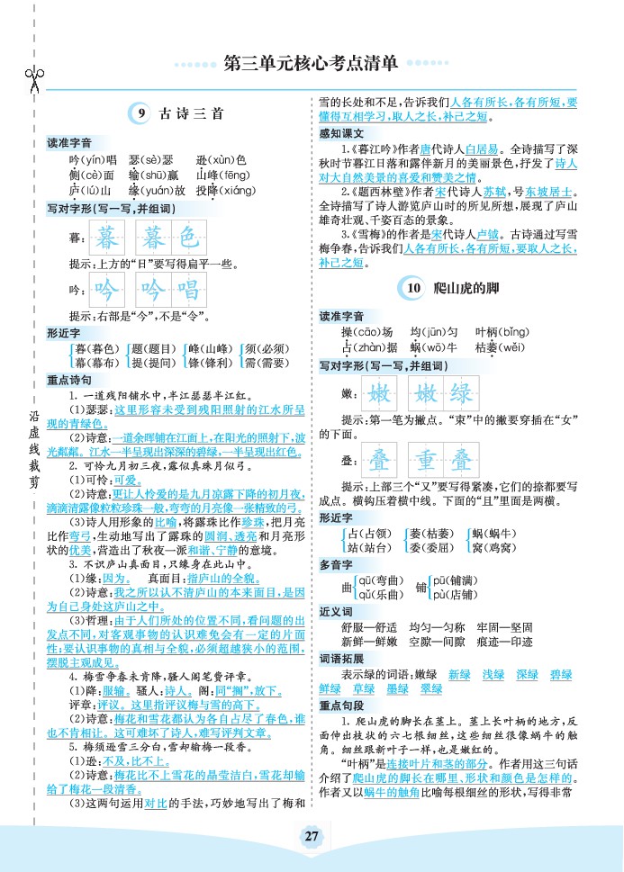 25年秋【四上语文】第三单元核心考点清单
