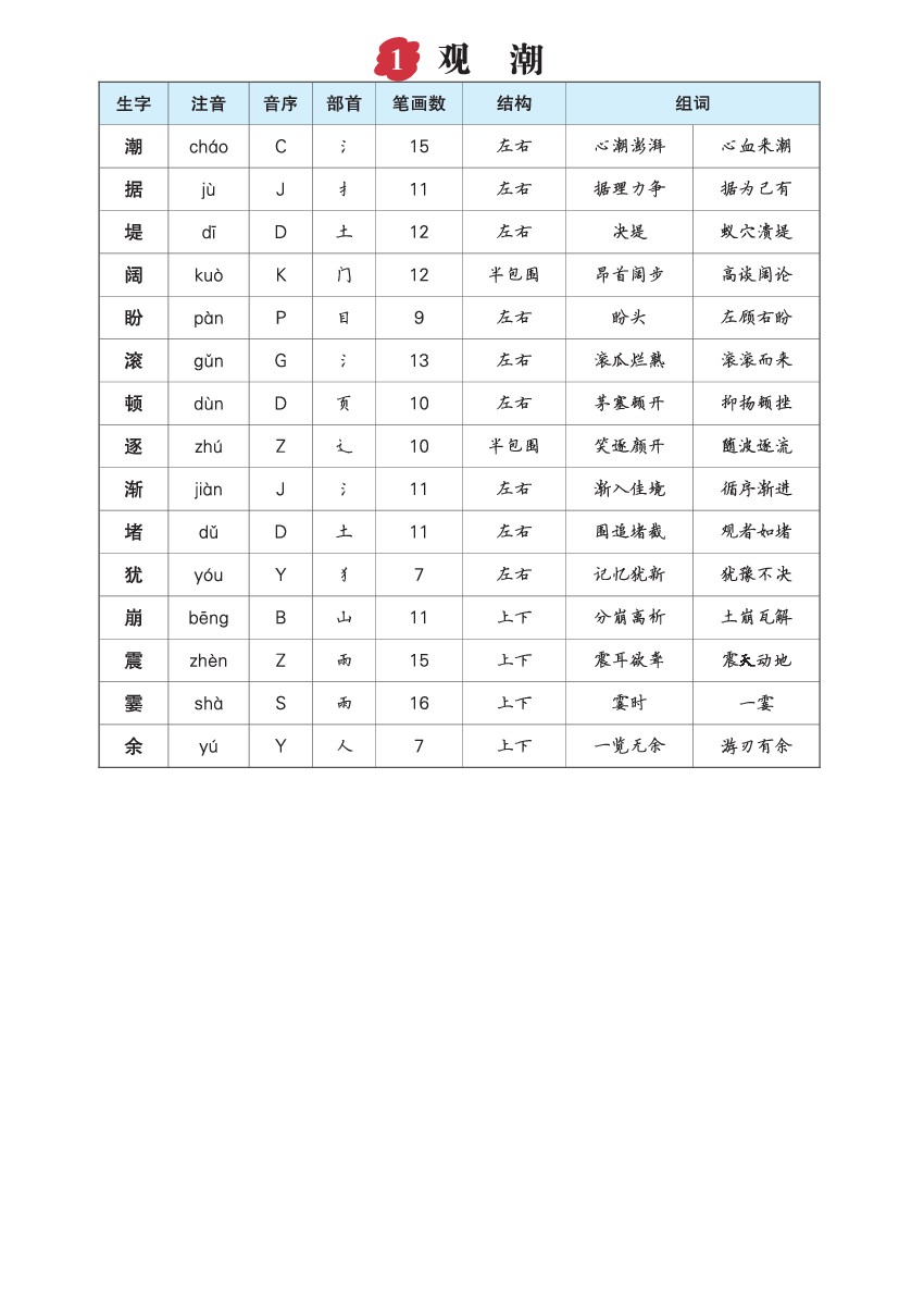 【语文】四上生字预习单(拼音,组词)