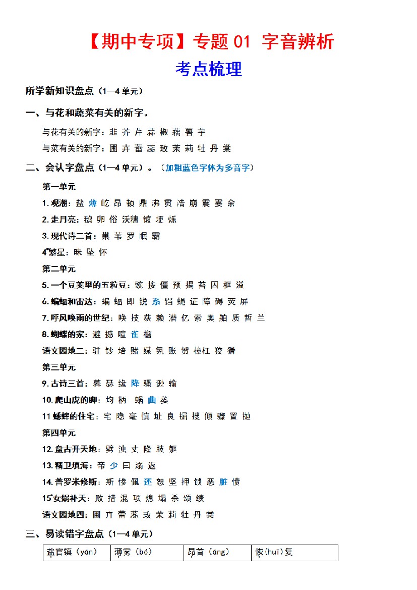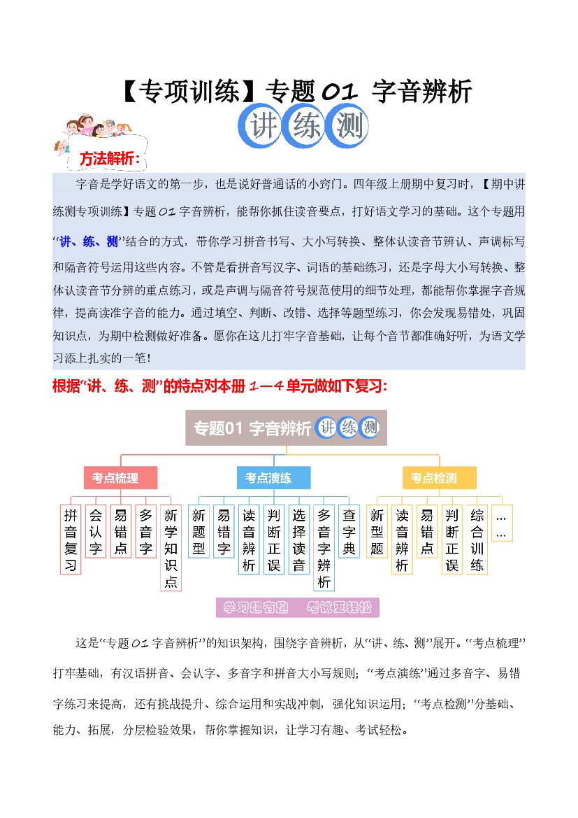 专题 01字音辨析(考点+试题)四年级语文上册期中专项复习(统编版)