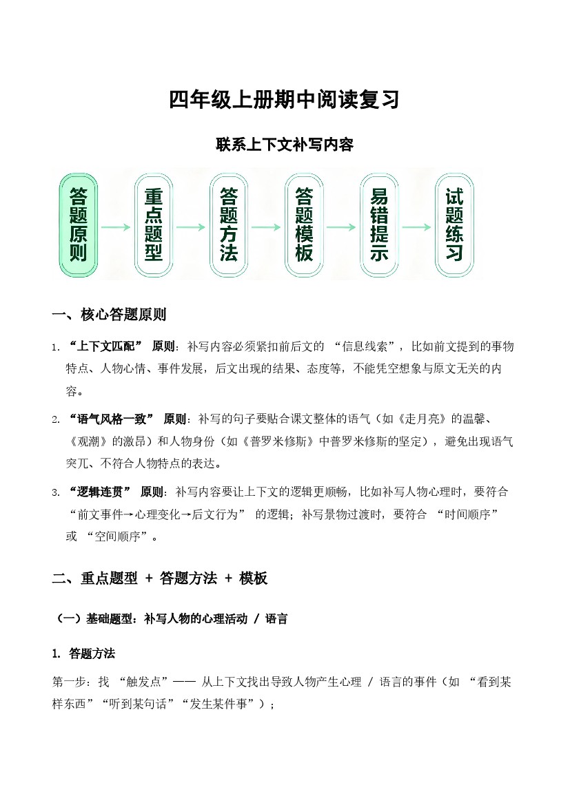 四年级(上)语文 期中阅读复习(练联系上下文补写内容)