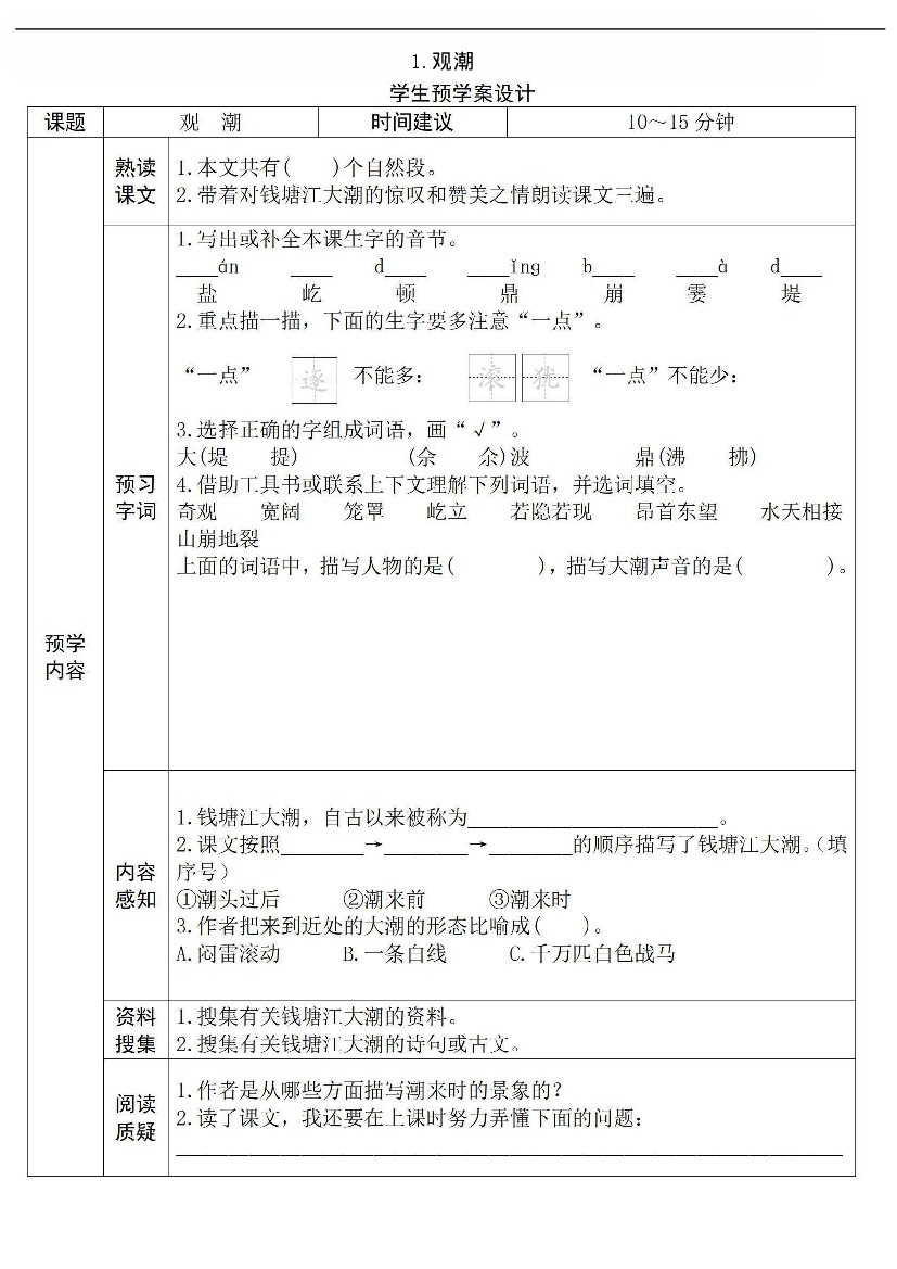 【语文】四上预习单