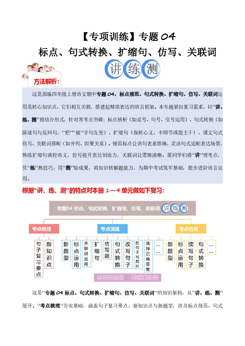 四年级(上)语文 期中专项训练专题4:标点、句式转换、扩缩句、仿写、关联词