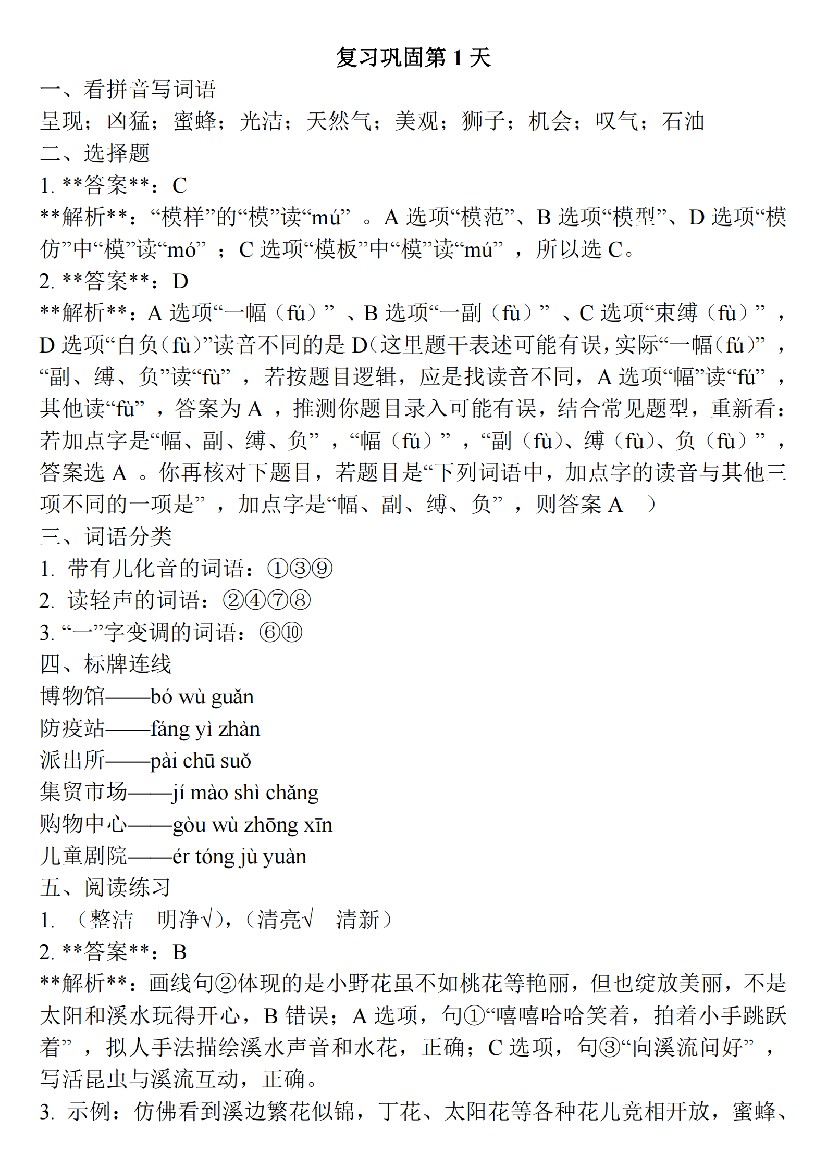 三升四语文【(答案)25新-暑假作业每日一练30天】