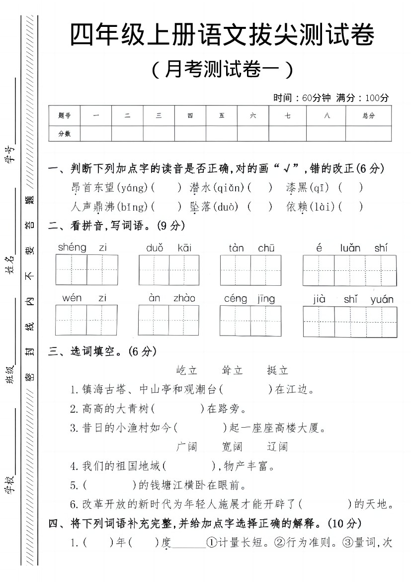四上语文25秋月考检测卷_1