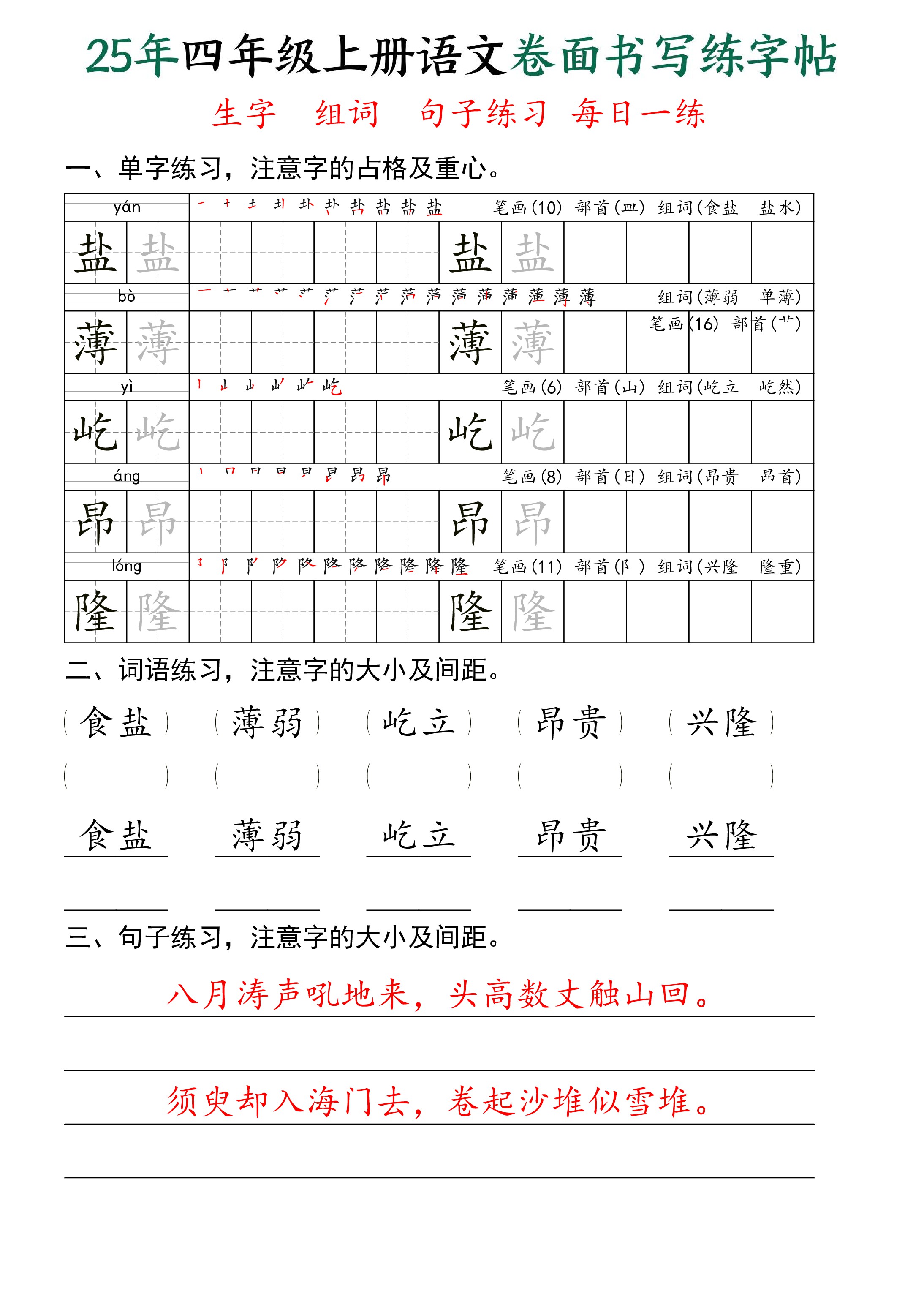25年秋四上语文卷面书写练字帖