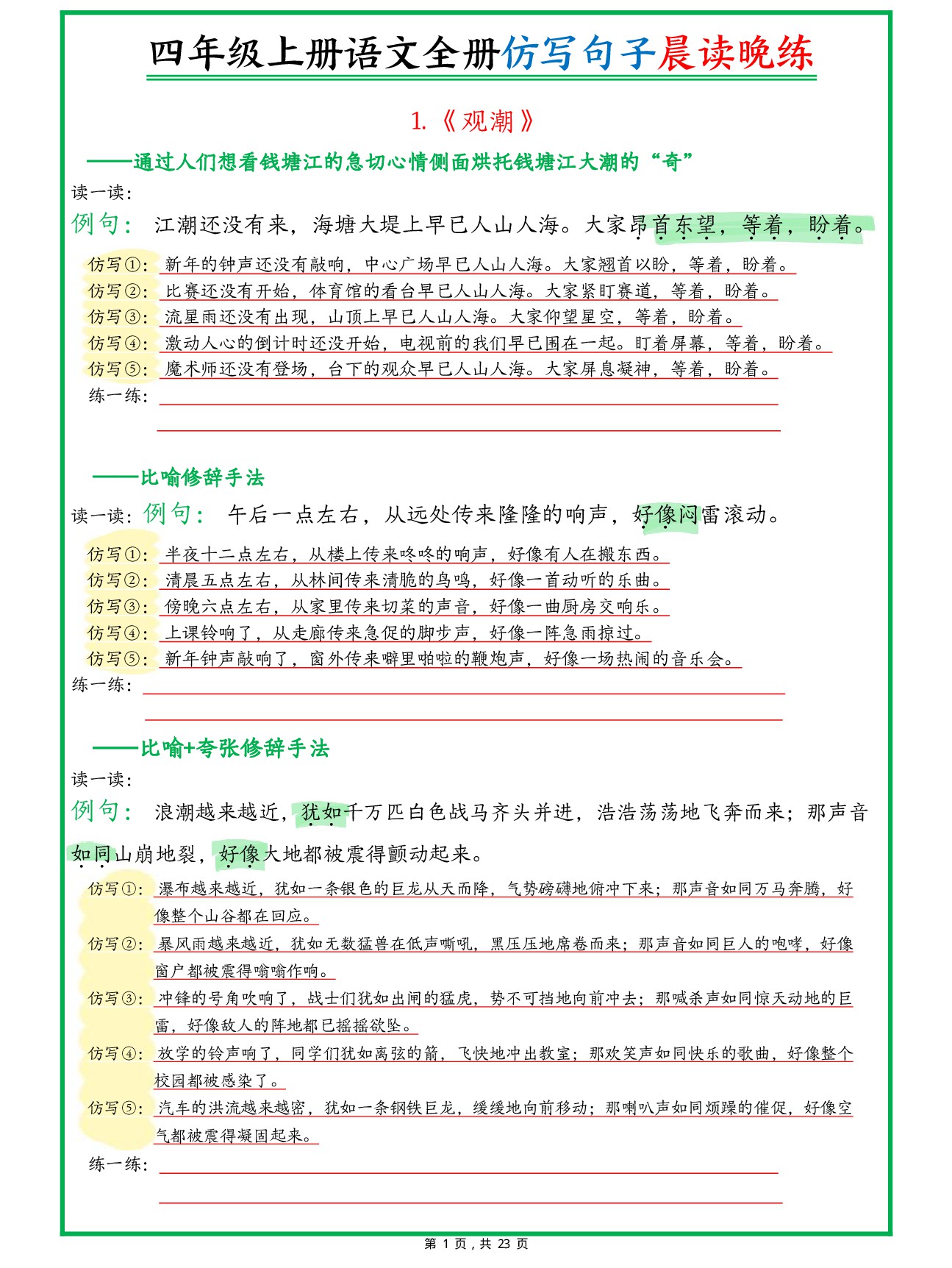 新四上语文全册句子仿写晨读晚练(23页)